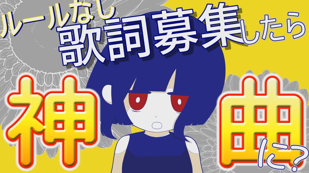 <span style="font-size: 16px;"><strong>74のバラバラな歌詞に世界初の手法で挑む!</strong></span><br>バラバラな歌詞・メロディから、<br>浮かび上がる新しいメロディとこの曲の「伝えたいこと」<br><br><br><u>初めまして!さっきぶり<br>ワアダキナノ@動物Pです。</u><br><br>4月にルール無用で歌詞募集を行いました。<br>テーマやモチーフや文字数などなど、一切のルールなし!<br><br>結果、74ものくそ・・・いえいえ、<strong>素敵な歌詞たちをご提供</strong>いただきました!<br><br>例<br>「隣の客はよく柿食うきゃりーぱみゅぱみゅ東京特許ランデヴ」(これで一つ)<br>「竜宮城行海藻列車 そんなに安いんほんまでっか」(これで一つ)<br>「カブラギ少佐が伝えたいのは」(誰だよ・・・)<br><br>しかも<span style="font-size: 16px;">全部採用をお約束</span>(※一人最低一個)してしまっていて・・・<br><br>絶望・・・・。<br><br><br>あまりに病みすぎて、体調を崩したところ、<span style="font-size: 16px;">天啓</span>が・・・・。<br><br><br>ということで完成しましたこの曲!!<br><br><span style="font-size: 16px;">どうやってすべてがバラバラの74の歌詞をまとめ、テーマ性を持たせたか!!!!</span><br><br>答えがこれです!!!!!<br><br>最初はちょっとわかりづらいかもですが・・・・<br>たぶん途中から意味が分かると思います。<br>「正直よくわかんない」て方は<br>イヤホンかヘッドフォンでお試しください!<br>あと解説のnoteもぜひご覧ください!<br><a href="https://note.com/vada_quinano/n/n6fed27ae8efb" target="_blank" rel="noopener nofollow">https://note.com/vada_quinano/n/n6fed27ae8efb</a><br><br>イラストも募集させていただきました!<br>こちらも素敵な才能がそろいにそろってます!!!!<br>こんなむちゃな企画にお付き合いいただきありがとうございました!<br>ひきつづき仲良くしてください・・・<br><br><br><br>最後に!ひとこと!!!<br><br><span style="font-size: 18px;">「歌詞募集だけはするな」</span><br><br><br><br>音楽<br>ワアダキナノ/動物P<br><a href="https://twitter.com/VadaQuinano" target="_blank" rel="noopener nofollow">https://twitter.com/VadaQuinano</a><br><br>歌詞(詳細note)<br>61名のみなさま<br><br>イラスト(詳細note)<br>21名のみなさま<br><br><a target="_blank" href="https://qa.nicovideo.jp/faq/show/19424?site_domain=default" style="font-size: 13px;color: #657586; text-decoration: underline; line-height: 1.4">この動画は投稿者によって修正されました</a>