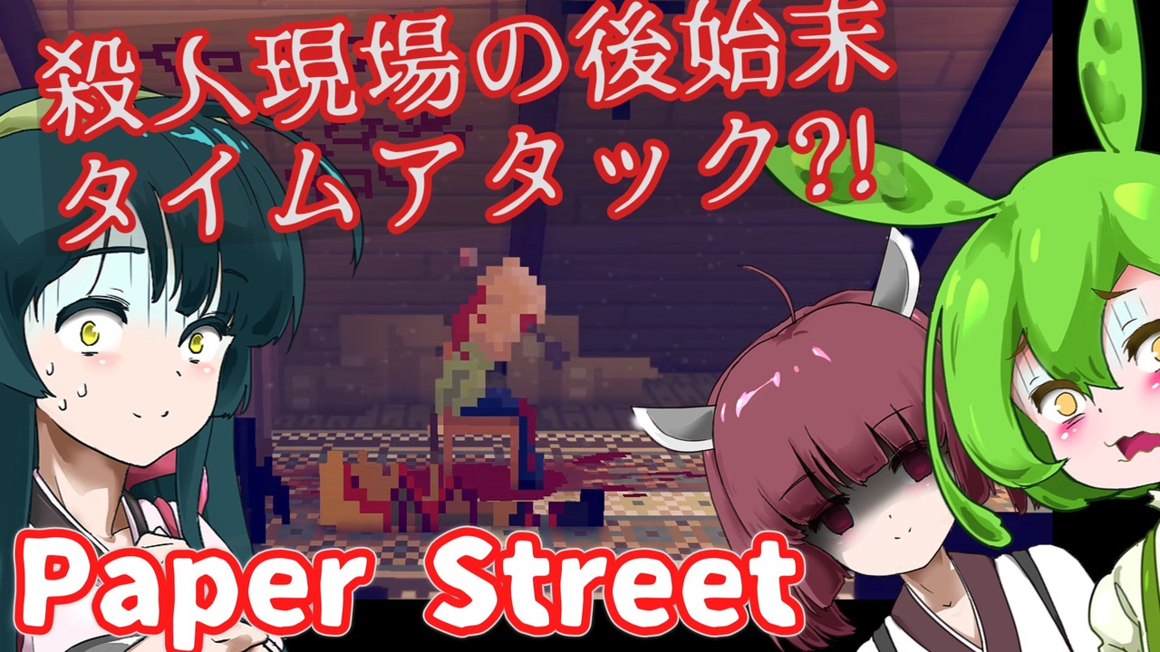 ずんだもん、東北きりたん、東北ずん子が短編のホラーゲームに挑むようです。<br>ADVゲームです。<br><br>◎あらすじ◎<br>ペーパーストリート、午後九時。<br>主人公はとある家で人を殺める。<br>目的は現場の後始末と時間内の逃亡であった…<br><br><br>※投稿者のガバ翻訳付きです。<br><br>配信ページ 日本語非対応<br><a href="https://ghetto-conspiracy.itch.io/paper-street" target="_blank" rel="noopener nofollow">https://ghetto-conspiracy.itch.io/paper-street</a><br><br>VOICEVOX:ずんだもん<br>VOICEVOX:玄野武宏(ピザ配達員)<br><a href="https://voicevox.hiroshiba.jp/" target="_blank" rel="noopener nofollow">https://voicevox.hiroshiba.jp/</a><br><br>COEIROINK:AI声優-銀芽(主人公)<br>COEIROINK:つくよみちゃん(ハロウィンの子ども)<br>COEIROINK:白痴ー(謎の男)<br><a href="https://coeiroink.com" target="_blank" rel="noopener nofollow">https://coeiroink.com</a><br><br>TALQu:豪徳貞江(近所のおばあちゃん)<br><a href="https://goutokusadae.jimdofree.com/" target="_blank" rel="noopener nofollow">https://goutokusadae.jimdofree.com/</a><br><br>BGMをお借りしました。<br><a href="https://otologic.jp/" target="_blank" rel="noopener nofollow">https://otologic.jp/</a><br>