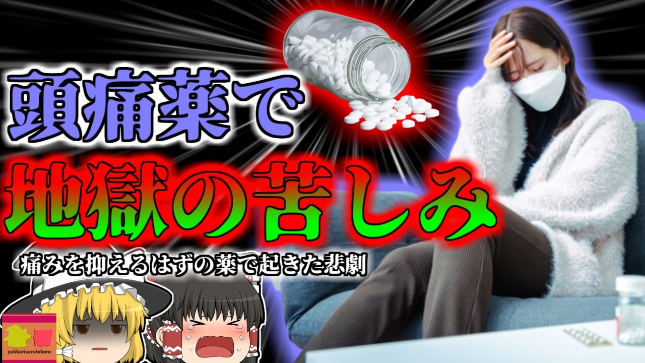 <a href="#" class="seekTime" data-seekTime="00:00" onclick="seekNicoPlayer('#00:00'); return false;">#00:00</a> 冒頭挨拶<br><a href="#" class="seekTime" data-seekTime="00:25" onclick="seekNicoPlayer('#00:25'); return false;">#00:25</a> 視聴上の注意<br><a href="#" class="seekTime" data-seekTime="00:48" onclick="seekNicoPlayer('#00:48'); return false;">#00:48</a> 本編開始<br><a href="#" class="seekTime" data-seekTime="1:19" onclick="seekNicoPlayer('#1:19'); return false;">#1:19</a> 小さいころからの悩み<br><a href="#" class="seekTime" data-seekTime="2:02" onclick="seekNicoPlayer('#2:02'); return false;">#2:02</a> 原因が分からない頭痛<br><a href="#" class="seekTime" data-seekTime="2:18" onclick="seekNicoPlayer('#2:18'); return false;">#2:18</a> 疲労時の酷い頭痛<br><a href="#" class="seekTime" data-seekTime="3:23" onclick="seekNicoPlayer('#3:23'); return false;">#3:23</a> 未知の凄まじい症状<br><a href="#" class="seekTime" data-seekTime="4:03" onclick="seekNicoPlayer('#4:03'); return false;">#4:03</a> 検査と医師の診察結果<br><a href="#" class="seekTime" data-seekTime="4:48" onclick="seekNicoPlayer('#4:48'); return false;">#4:48</a> 「薬剤乱用頭痛」<br><a href="#" class="seekTime" data-seekTime="6:31" onclick="seekNicoPlayer('#6:31'); return false;">#6:31</a> 肝臓にかかる負担<br><a href="#" class="seekTime" data-seekTime="6:58" onclick="seekNicoPlayer('#6:58'); return false;">#6:58</a> 専門的な治療が必要<br><a href="#" class="seekTime" data-seekTime="7:42" onclick="seekNicoPlayer('#7:42'); return false;">#7:42</a> 診断基準と注意点<br><br><br>#頭痛 #片頭痛 #鎮痛剤<br>今回は以前いただいていたリクエストの中から、薬剤に関する1事例を紹介したいと思います。<br>関東地方某都市に暮らしていた女性「Aさん」は、一度地元企業で就職し、OLとして働いていましたが、夢を諦められず、上京して声優の専門学校に入学。<br>それからの約二年間、彼女はレッスンとバイトに勤しみ、ほぼ休まずに努力を続けていました。<br>しかし、彼女は小さいころから、片頭痛の症状に悩まされており、体が疲れていると、すぐに症状が現れてしまうため、鎮痛剤が常に手放せない状態でした。<br>この頃もそれは変わらず、彼女はほぼ毎日のように、鎮痛剤を服用し、効き目が薄い日などには、説明書きの倍の量を服用するようなこともありました。<br>そんなある日の早朝。彼女はこれまで体験したことの無いような、激しい頭痛と嘔吐の症状に見舞われ、歩くことも難しくなってしまい、救急車を呼び、近くの病院へと搬送されて行きました。<br>そこで詳しい検査を行った結果、肝臓にの数値異常がみられ、脳神経外科の医師は、彼女にこの頭痛の原因と思われる要素を説明しましたが、それはあまりにも意外な物でした。<br><br>引用・出展・参考文献<br>片頭痛について|片頭痛を知る - 頭痛の悩み.jp<br><a href="https://ishort.ink/ESmR" target="_blank" rel="noopener nofollow">https://ishort.ink/ESmR</a><br>日本臨床内科医 「頭痛」<br><a href="https://ishort.ink/bD9S" target="_blank" rel="noopener nofollow">https://ishort.ink/bD9S</a><br>日本頭痛学会<br><a href="https://ishort.ink/A4wR" target="_blank" rel="noopener nofollow">https://ishort.ink/A4wR</a><br><br><br />※この動画は過去の事件を知り、現在でも同じことが発生する危険性を再認識、関与しないように促すための動画であり、視聴者を扇動、動揺を誘うためのコンテンツではありません。<br><br>ご要望にお応えして、メンバーシップの開設を行いました。<br>下記URLからも登録可能ですので、ご興味がある方は是非ご参加ください。<br><a href="https://www.youtube.com/channel/UCcT5a1J7XJW7CLYI2RKl4pw/join" target="_blank" rel="noopener nofollow">https://www.youtube.com/channel/UCcT5a1J7XJW7CLYI2RKl4pw/join</a><br><br><br>Twitter<br>→<a href="https://twitter.com/yukkurisurutoko" target="_blank" rel="noopener nofollow">https://twitter.com/yukkurisurutoko</a><br><br>取り急ぎ、簡易的にですがマイリストを作りました。<br>【ゆっくり解説】事故・事件関係紹介リスト <br><a href="https://www.nicovideo.jp/mylist/71034319" target="_blank" rel="noopener nofollow">https://www.nicovideo.jp/mylist/71034319</a><br>【ゆっくり解説】放射線系事故<br><a href="https://www.nicovideo.jp/mylist/71034368" target="_blank" rel="noopener nofollow">https://www.nicovideo.jp/mylist/71034368</a><br>【ゆっくり解説】鉄道系事故・事件関連<br><a href="https://www.nicovideo.jp/mylist/71034379" target="_blank" rel="noopener nofollow">https://www.nicovideo.jp/mylist/71034379</a>
