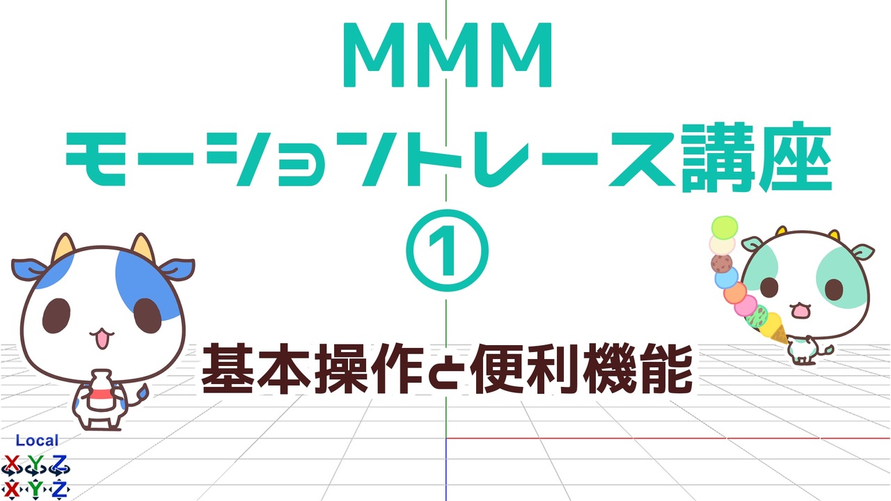 ※すみません音量めっっちゃ小さいです!<br>広告との音量差にご注意ください。<br>講座5から音量回復します!<br><br><br>~ 基本操作と便利機能 ~<br><br>[<a href="#" class="seekTime" data-seekTime="2:33" onclick="seekNicoPlayer('#2:33'); return false;">#2:33</a>] 動画とモデルの読み込み<br>[<a href="#" class="seekTime" data-seekTime="3:41" onclick="seekNicoPlayer('#3:41'); return false;">#3:41</a>] ライト / 地面影の設定<br>[<a href="#" class="seekTime" data-seekTime="5:59" onclick="seekNicoPlayer('#5:59'); return false;">#5:59</a>] 拡張ボーンハンドル / 自動バックアップ機能<br>[<a href="#" class="seekTime" data-seekTime="7:43" onclick="seekNicoPlayer('#7:43'); return false;">#7:43</a>] タイムラインの便利操作<br>[<a href="#" class="seekTime" data-seekTime="12:09" onclick="seekNicoPlayer('#12:09'); return false;">#12:09</a>] モーションレイヤー / 補間曲線<br>[<a href="#" class="seekTime" data-seekTime="25:59" onclick="seekNicoPlayer('#25:59'); return false;">#25:59</a>] 表示枠のカスタマイズ機能<br><br>MMMモーショントレース経験=1曲×9体<br>3Dアニメーション等専門的に学んだ経験はないので全て経験則ですが、<br>少しでもこれから始めてみたい方の参考になれば幸いです。<br><br><br>講座内の素材を配布中♪観ながらすぐに練習できます。<br>【MMMモーショントレース練習セット】<br><a href="https://ai3d.booth.pm/items/4822688" target="_blank" rel="noopener nofollow">https://ai3d.booth.pm/items/4822688</a><br><br>【MMM (MikuMikuMoving) のダウンロードはこちら】<br><a href="https://sites.google.com/site/mikumikumoving/" target="_blank" rel="noopener nofollow">https://sites.google.com/site/mikumikumoving/</a><br><br>【おすすめプラグイン/エフェクト】<br>MultiMoitor_MMM_P (P.I.P様)<br>→<a href="https://bowlroll.net/file/89296" target="_blank" rel="noopener nofollow">https://bowlroll.net/file/89296</a><br><br>WorkingFloor AL (針金P様)<br>→<a href="https://seiga.nicovideo.jp/seiga/im1575145" target="_blank" rel="noopener">im1575145</a><br>動画内ではWorkingFloor2を表記しています。<br><br>→指ポーズ適用支援+α (マスク・ザ・春原様)<br><a href="https://www.nicovideo.jp/watch/sm36000069" class="watch">sm36000069</a><br><br><br /><br><span style="color: #000000; font-size: 14px;">※悪意のあるコメントはお控えください。</span><br><br><span style="color: #000000; font-size: 14px;">【投稿動画:</span><span style="color: #006699; font-size: 14px;"><a href="https://www.nicovideo.jp/mylist/56396276" target="_blank" rel="noopener">mylist/56396276</a></span><span style="color: #000000; font-size: 14px;">】</span>