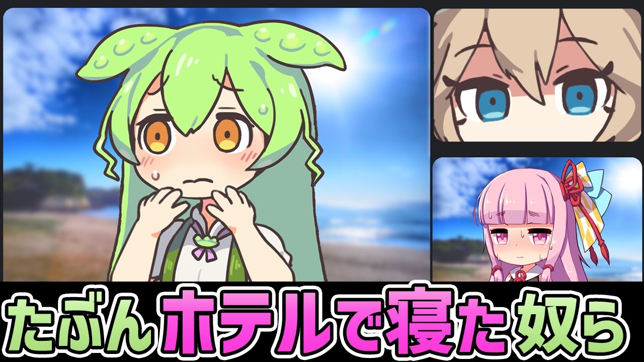 前のホテル動画のリメイク的な茶番Web会議動画です。<br>ギリギリ法に触れないストーキングの方がヤンデレっぽい?<br> <br>いつも広告等してくれてる皆様、ありがとうなのだ!<br> <br>前回→<a href="https://www.nicovideo.jp/watch/sm42273079" class="watch">sm42273079</a><br> <br>以下お借りした素材など<br>[立ち絵等]<br>坂本アヒル様<br>blueberry様 <br>[BB]<br>ShoPuyo様「髪の毛を解いたずんだもんBB」<br><a href="https://www.youtube.com/watch?v=waVMpHeTNdI" target="_blank" rel="noopener nofollow">https://www.youtube.com/watch?v=waVMpHeTNdI</a><br>[合成音声]<br>VOICEVOX:ずんだもん<br>VOICEVOX:春日部つむぎ<br>A.I.VOICE:琴葉茜<br>[BGM・効果音・エフェクト]<br>効果音ラボさま<br>OtoLogicさま<br>DOVA-SYNDROMEさま<br>