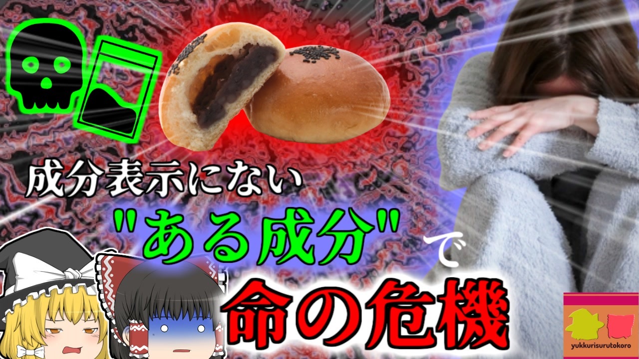 <a href="#" class="seekTime" data-seekTime="00:00" onclick="seekNicoPlayer('#00:00'); return false;">#00:00</a> 冒頭挨拶<br><a href="#" class="seekTime" data-seekTime="00:30" onclick="seekNicoPlayer('#00:30'); return false;">#00:30</a> 視聴上の注意<br><a href="#" class="seekTime" data-seekTime="00:54" onclick="seekNicoPlayer('#00:54'); return false;">#00:54</a> 本編開始<br><a href="#" class="seekTime" data-seekTime="1:27" onclick="seekNicoPlayer('#1:27'); return false;">#1:27</a> ダイエットをしていた「Aさん」<br><a href="#" class="seekTime" data-seekTime="2:15" onclick="seekNicoPlayer('#2:15'); return false;">#2:15</a> 異変<br><a href="#" class="seekTime" data-seekTime="3:08" onclick="seekNicoPlayer('#3:08'); return false;">#3:08</a> 検査を受けるも原因不明<br><a href="#" class="seekTime" data-seekTime="4:06" onclick="seekNicoPlayer('#4:06'); return false;">#4:06</a> 一週間後に再び<br><a href="#" class="seekTime" data-seekTime="5:00" onclick="seekNicoPlayer('#5:00'); return false;">#5:00</a> おにぎり、スープ、スポーツドリンク<br><a href="#" class="seekTime" data-seekTime="5:34" onclick="seekNicoPlayer('#5:34'); return false;">#5:34</a> 疑われた成分<br><a href="#" class="seekTime" data-seekTime="6:01" onclick="seekNicoPlayer('#6:01'); return false;">#6:01</a> 「エリスリトール」<br><a href="#" class="seekTime" data-seekTime="7:00" onclick="seekNicoPlayer('#7:00'); return false;">#7:00</a> 成分チェックが欠かせなくなったAさん<br><a href="#" class="seekTime" data-seekTime="7:33" onclick="seekNicoPlayer('#7:33'); return false;">#7:33</a> あんパンを食べた直後命の危機に<br><a href="#" class="seekTime" data-seekTime="8:26" onclick="seekNicoPlayer('#8:26'); return false;">#8:26</a> 表示されていなかったのに<br><a href="#" class="seekTime" data-seekTime="9:28" onclick="seekNicoPlayer('#9:28'); return false;">#9:28</a> 経口負荷試験でようやく判明<br><a href="#" class="seekTime" data-seekTime="9:52" onclick="seekNicoPlayer('#9:52'); return false;">#9:52</a> 稀に起こるアレルギー<br><a href="#" class="seekTime" data-seekTime="10:57" onclick="seekNicoPlayer('#10:57'); return false;">#10:57</a> 発症原因は現在不明<br><br><br><br>#アレルギー #食品 #甘味料<br>今回は以前リクエストがありました、とある食品に関する事例です。<br>関西地方某都市に暮らす女性「Aさん」はこの日、夏に向けてのダイエットを決意し、筋トレ、食事制限などを開始し、ダイエット用の食品などを食事に取り入れるという生活をはじめていました。<br>しかしある日、彼女は食後に突然のアレルギー症状に襲われ、アナフィラキシー症状によって、病院を受診していました。<br>病院ではすぐに処置がとられ、血液検査などが行われましたが、それはすべて陰性。原因がわからず、このときはアレルギーを抑える処方薬を受け取り、帰宅していました。<br>ですが、その一週間後にも、再び全身症状が現れ、今度は呼吸困難などの重い症状がでて、救急車で病院に搬送されるという事件が起きました。<br>担当した医師は、Aさんが食事でとっていたある食品の成分を疑い、検査を行いましたが、やはり陰性。<br>この時もまた原因は判明しませんでしたが、実は彼女は様々な食品に含まれる、"ある甘味料"によってアレルギーを起こしていたのです。<br><br>引用・出展・参考文献<br>東京都福祉保健局 「エリスリトール」<br><a href="https://ishort.ink/josH" target="_blank" rel="noopener nofollow">https://ishort.ink/josH</a><br>一般流通食品中の糖アルコール含有量調査について<br><a href="https://ishort.ink/LEsP" target="_blank" rel="noopener nofollow">https://ishort.ink/LEsP</a><br>日本小児アレルギー学会誌 第28巻1号25~30,2014<br>低分子化合物の食物アレルギー<br><a href="https://ishort.ink/AKSn" target="_blank" rel="noopener nofollow">https://ishort.ink/AKSn</a><br>一般社団法人 日本アレルギー学会<br><a href="https://ishort.ink/kZfz" target="_blank" rel="noopener nofollow">https://ishort.ink/kZfz</a><br>その他視聴者提供資料など<br><br><br />※この動画は過去の事件を知り、現在でも同じことが発生する危険性を再認識、関与しないように促すための動画であり、視聴者を扇動、動揺を誘うためのコンテンツではありません。<br><br>ご要望にお応えして、メンバーシップの開設を行いました。<br>下記URLからも登録可能ですので、ご興味がある方は是非ご参加ください。<br><a href="https://www.youtube.com/channel/UCcT5a1J7XJW7CLYI2RKl4pw/join" target="_blank" rel="noopener nofollow">https://www.youtube.com/channel/UCcT5a1J7XJW7CLYI2RKl4pw/join</a><br><br><br>Twitter<br>→<a href="https://twitter.com/yukkurisurutoko" target="_blank" rel="noopener nofollow">https://twitter.com/yukkurisurutoko</a><br><br>取り急ぎ、簡易的にですがマイリストを作りました。<br>【ゆっくり解説】事故・事件関係紹介リスト <br><a href="https://www.nicovideo.jp/mylist/71034319" target="_blank" rel="noopener nofollow">https://www.nicovideo.jp/mylist/71034319</a><br>【ゆっくり解説】放射線系事故<br><a href="https://www.nicovideo.jp/mylist/71034368" target="_blank" rel="noopener nofollow">https://www.nicovideo.jp/mylist/71034368</a><br>【ゆっくり解説】鉄道系事故・事件関連<br><a href="https://www.nicovideo.jp/mylist/71034379" target="_blank" rel="noopener nofollow">https://www.nicovideo.jp/mylist/71034379</a><br><br><a target="_blank" href="https://qa.nicovideo.jp/faq/show/19424?site_domain=default" style="font-size: 13px;colo