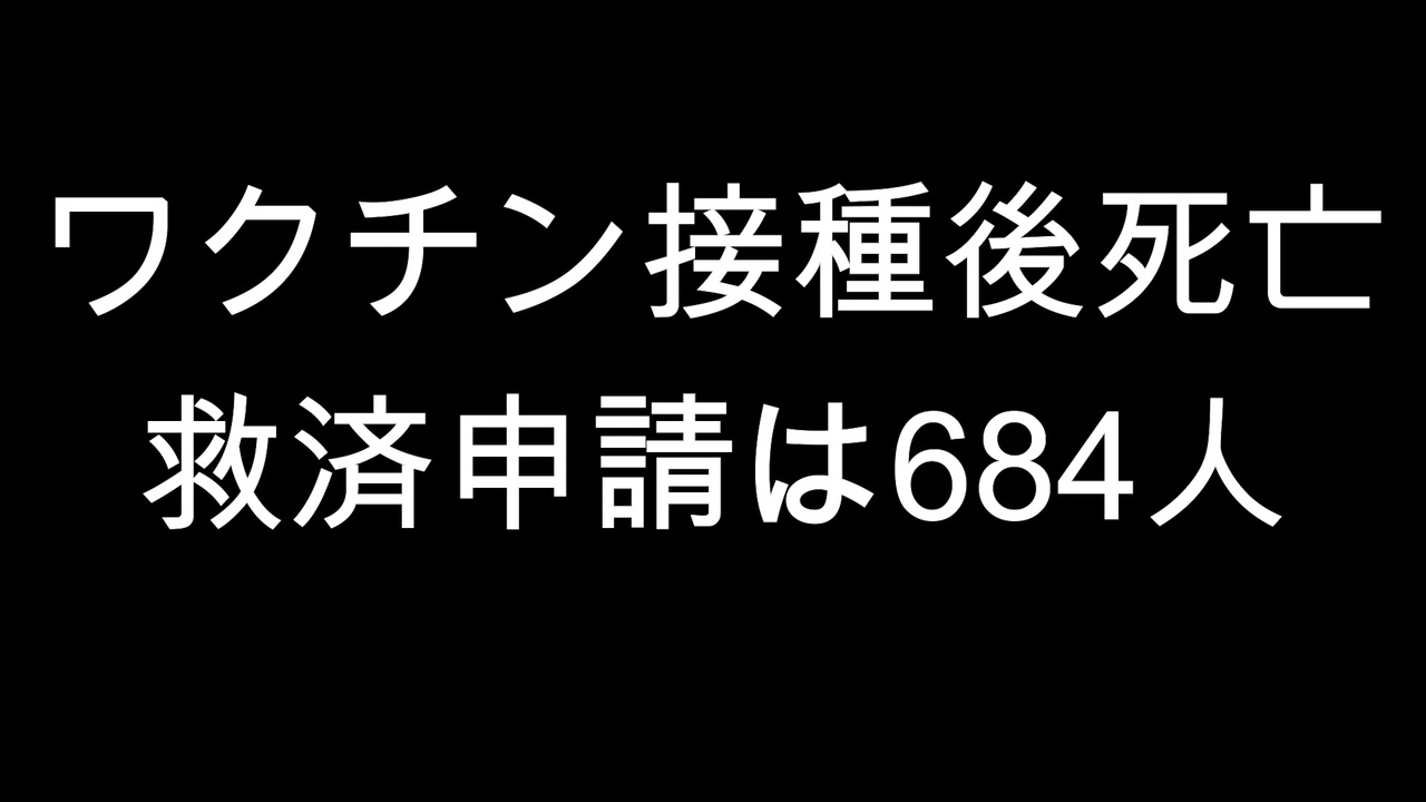 COVID-19ワクチン死亡被害救済申請は684人 4月時点、審査終了は1割程度<br><a href="https://mail.google.com/mail/u/0/#inbox/FMfcgzGsmrHpnVbmqLQxWxDkmzLPfChV" target="_blank" rel="noopener nofollow">https://mail.google.com/mail/u/0/#inbox/FMfcgzGsmrHpnVbmqLQxWxDkmzLPfChV</a><br>史上最大のワクチン薬害は既に確定しています<br><a href="https://www.nicovideo.jp/watch/sm41307487" target="_blank" rel="noopener nofollow">https://www.nicovideo.jp/watch/sm41307487</a><br>コロナワクチンは人類史上最大の犯罪<br><a href="https://www.nicovideo.jp/watch/sm40857084" target="_blank" rel="noopener nofollow">https://www.nicovideo.jp/watch/sm40857084</a><br>人類史上空前の薬害事件を糾弾する卒業論文<br><a href="https://www.nicovideo.jp/watch/sm40682179" target="_blank" rel="noopener nofollow">https://www.nicovideo.jp/watch/sm40682179</a><br>親日の一般人チャンネル YouTube<br><a href="https://www.youtube.com/@shinniti/videos" target="_blank" rel="noopener nofollow">https://www.youtube.com/@shinniti/videos</a><br>