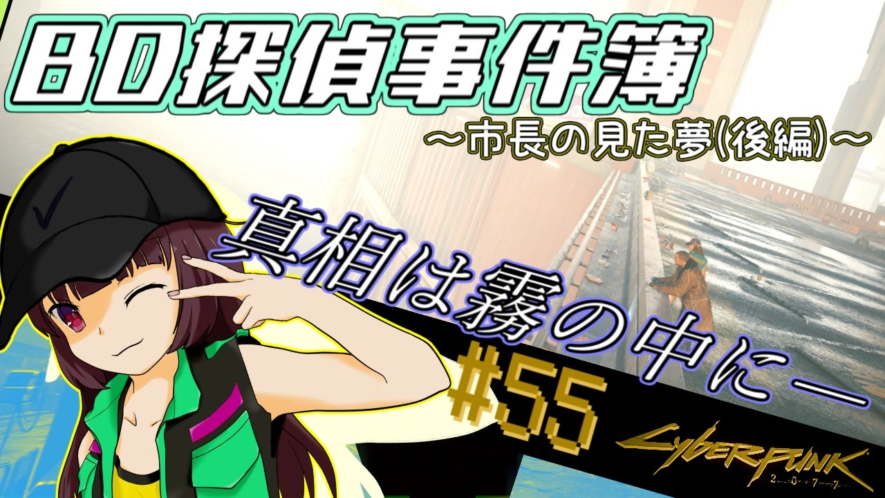 前市長の死亡の謎を調査して欲しい――。市長選の最中、そう<br>依頼して来たのは有力候補のジェファーソン・ペラレスだった。<br>BD探偵のきりたんVは、提供された前市長の記録に生前から<br>命を狙っていた何者かの影を感じ取る。同じく前市長の事件の<br>謎を追う刑事、リバー・ウォードの協力を得たきりたんVは、<br>市長の足取りを追うべく彼の知る情報屋へと赴く。大都会ナイ<br>トシティの闇を駆けるBD探偵きりたんVの事件簿、第55話。<br><br>画面酔い・グロ注意。<br>酔いそうだと思った時は、きりたんでも眺めて適度に三半規管を休めて下さい。<br><br> <a href="https://www.nicovideo.jp/watch/sm42303202" class="watch">sm42303202</a>←前 次→<a href="https://www.nicovideo.jp/watch/sm42393152" class="watch">sm42393152</a><br> サイバーパンク2077:<a href="https://www.nicovideo.jp/mylist/72929717" target="_blank" rel="noopener">mylist/72929717</a><br><br> きりたん実況part1集:<a href="https://www.nicovideo.jp/mylist/65852559" target="_blank" rel="noopener">mylist/65852559</a><br><br><br>VOICEVOX青山龍星(<a href="https://voicevox.hiroshiba.jp/)" target="_blank" rel="noopener nofollow">https://voicevox.hiroshiba.jp/)</a><br><br>プレイ環境<br> Ver1.62 PC版 難易度ベリーハード not初見<br> modは画質系・美肌系modを使用<br> ゲームバランスに影響の出るものは使用していません<br> 解説等はにわか知識ですので、間違っている箇所も有ると思います。<br> 適当に聞き流して下さい。<br><br> 数年落ちのPCながらも、そこそこ快調に動作中(720p/60fps)<br> CPU i7-6700 / グラボ GTX1060