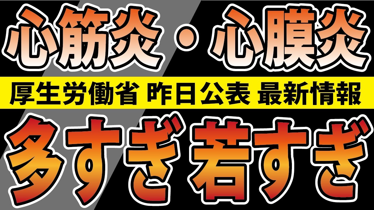 ❏本日の資料 厚生労働省 疾病・障害認定審査会 審議結果<br><a href="https://www.mhlw.go.jp/stf/newpage_33510.html" target="_blank" rel="noopener nofollow">https://www.mhlw.go.jp/stf/newpage_33510.html</a><br><br><br>❏心筋炎・心膜炎の救済事例紹介 前回の動画<br><a href="https://youtu.be/PXq6X2p7wzM" target="_blank" rel="noopener nofollow">https://youtu.be/PXq6X2p7wzM</a><br><br><br>❏心筋炎詐欺グラフについてまとめた動画はこちら<br><a href="https://nicochannel.jp/fujie/video/smBYR8QS9de8Jdw6hyJ9MfzJ" target="_blank" rel="noopener nofollow">https://nicochannel.jp/fujie/video/smBYR8QS9de8Jdw6hyJ9MfzJ</a><br><br>―――――――――――――――――――――――――――――――<br><br>❑4月10日発売予定「世界を欺いた〇〇〇〇〇〇〇」(宝島社新書)<br><a href="https://amzn.to/3ymDfgr" target="_blank" rel="noopener nofollow">https://amzn.to/3ymDfgr</a><br>鳥集徹(著) 闇のダディ(著) 藤江成光(著)←私<br><br>―――――――――――――――――――――――――――――――<br><br>❑新しい動画サイト「真の日本人増加計画」始めました!<br><a href="https://nicochannel.jp/fujie/" target="_blank" rel="noopener nofollow">https://nicochannel.jp/fujie/</a><br>(ニコニコチャンネル+)<br><br><br>❏藤江の活動を支援していただける方向け<br>【藤江支援口座】のご案内<br>住信SBIネット銀行 ミカン支店(店番号103)<br>口座番号 3107694<br>口座名義 フジエ マサミツ<br><br>――――――――――――――――――――――――――――――<br><br>日本の人口増加を目指す男、藤江です!【メインチャンネル】<br><a href="https://www.youtube.com/c/JINKOUZOUKA/" target="_blank" rel="noopener nofollow">https://www.youtube.com/c/JINKOUZOUKA/</a><br><br>地域と日本の存続のためニ!【藤江2ndチャンネル】<br><a href="https://www.youtube.com/channel/UCfBh4rv5UT7D-qR6KsoZrsA" target="_blank" rel="noopener nofollow">https://www.youtube.com/channel/UCfBh4rv5UT7D-qR6KsoZrsA</a><br><br>今こそ!三千年の底力【藤江3rdチャンネル】<br><a href="https://www.youtube.com/channel/UC5Yrsm8-X8nZj4uKgvE7CBw" target="_blank" rel="noopener nofollow">https://www.youtube.com/channel/UC5Yrsm8-X8nZj4uKgvE7CBw</a><br><br>四海兄弟【藤江4thチャンネル】<br><a href="https://www.youtube.com/channel/UCiyJNO57quj80Ysy7nOABvA" target="_blank" rel="noopener nofollow">https://www.youtube.com/channel/UCiyJNO57quj80Ysy7nOABvA</a><br><br>五穀豊穣【藤江5thチャンネル】<br><a href="https://www.youtube.com/channel/UCptMJCoKYghfew5tDzoEqHQ" target="_blank" rel="noopener nofollow">https://www.youtube.com/channel/UCptMJCoKYghfew5tDzoEqHQ</a><br><br>六根清浄【藤江6thチャンネル】<br><a href="https://www.youtube.com/@FUJIE6th" target="_blank" rel="noopener nofollow">https://www.youtube.com/@FUJIE6th</a><br><br>藤江のTwitter<br><a href="https://twitter.com/JINKOUZOUKA_jp" target="_blank" rel="noopener nofollow">https://twitter.com/JINKOUZOUKA_jp</a>