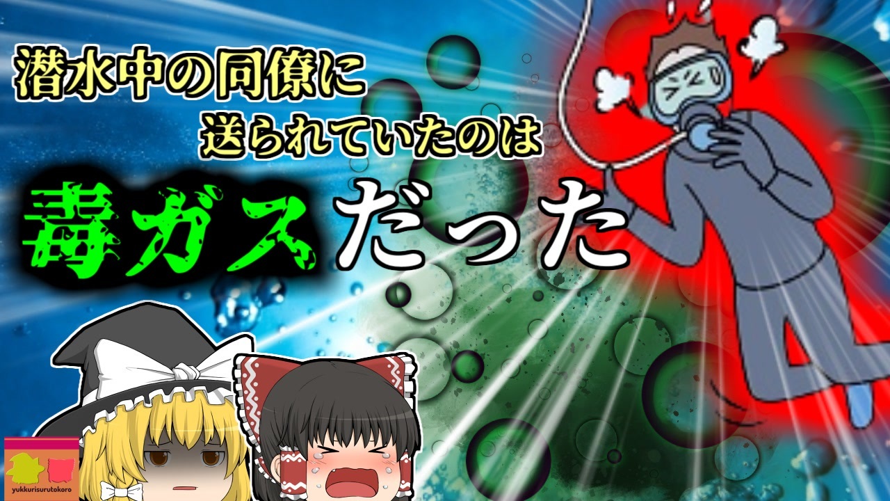 <a href="#" class="seekTime" data-seekTime="00:00" onclick="seekNicoPlayer('#00:00'); return false;">#00:00</a> 冒頭挨拶<br><a href="#" class="seekTime" data-seekTime="00:52" onclick="seekNicoPlayer('#00:52'); return false;">#00:52</a> 視聴上の注意<br><a href="#" class="seekTime" data-seekTime="1:16" onclick="seekNicoPlayer('#1:16'); return false;">#1:16</a> 本編開始<br><a href="#" class="seekTime" data-seekTime="1:49" onclick="seekNicoPlayer('#1:49'); return false;">#1:49</a> 水底での潜水工事<br><a href="#" class="seekTime" data-seekTime="2:20" onclick="seekNicoPlayer('#2:20'); return false;">#2:20</a> 壊れて切れなかったウエットスーツ<br><a href="#" class="seekTime" data-seekTime="3:33" onclick="seekNicoPlayer('#3:33'); return false;">#3:33</a> 二人での作業が開始<br><a href="#" class="seekTime" data-seekTime="3:51" onclick="seekNicoPlayer('#3:51'); return false;">#3:51</a> 異変と発覚<br><a href="#" class="seekTime" data-seekTime="4:36" onclick="seekNicoPlayer('#4:36'); return false;">#4:36</a> 一酸化炭素中毒と低体温症<br><a href="#" class="seekTime" data-seekTime="4:54" onclick="seekNicoPlayer('#4:54'); return false;">#4:54</a> 調査で発覚した原因と要因<br><a href="#" class="seekTime" data-seekTime="6:36" onclick="seekNicoPlayer('#6:36'); return false;">#6:36</a> 必要だった対策<br><br><br>今回紹介するのは、海岸工事での少し特殊な事例です。<br>わが国の本州、日本海側に位置する某都市海岸ではこの日、漁港の復旧工事が行われていました。<br>この工事は市から下請け業者に依頼されたもので、その業者の作業員男性「Aさん」は、潜水士としてこの工事に参加していました。<br>彼が行う予定だったのは、前日までに水底にまかれていた砕石を、潜って手作業でならすといったもの。<br>彼は現場に到着後、会社支給のセミドライスーツを着て、同僚のBさんサポートのもと、潜水を開始。<br>地上ではBさんによって、水中のAさんに空気を送るためのポンプが管理されていました。<br>作業は順調に進みましたが、Aさんが予定時刻になっても地上に上がってこないので、不審に思ったBさんは彼の様子を見に行くことに。<br>すると、そこには意識もうろう状態で、水面に漂うAさんの姿が。<br>すぐに救急に通報され、彼は病院に搬送されて行きました。<br>病院で彼は、「一酸化炭素中毒」「低体温症」と診断され、もう少し処置が遅れていたら、危険な状態になっていました。<br><br>水中で彼に一体何が起きていたのでしょうか?<br><br>引用・出展・参考文献<br>厚生労働省 職場のあんぜんサイト<br><a href="https://ishort.ink/GQnH" target="_blank" rel="noopener nofollow">https://ishort.ink/GQnH</a><br><a href="https://ishort.ink/d2Nn" target="_blank" rel="noopener nofollow">https://ishort.ink/d2Nn</a><br><br>低体温症 - 25. 外傷と中毒 - MSDマニュアル家庭版<br><br><a href="https://ishort.ink/tvTa" target="_blank" rel="noopener nofollow">https://ishort.ink/tvTa</a><br>安全衛生技術試験協会 潜水士<br><a href="https://ishort.ink/a1qt" target="_blank" rel="noopener nofollow">https://ishort.ink/a1qt</a><br>JAF Q]雪で埋まった場合の一酸化炭素中毒の危険性とは?<br><a href="https://ishort.ink/8po7" target="_blank" rel="noopener nofollow">https://ishort.ink/8po7</a><br>その他視聴者提供資料など<br><br><br>