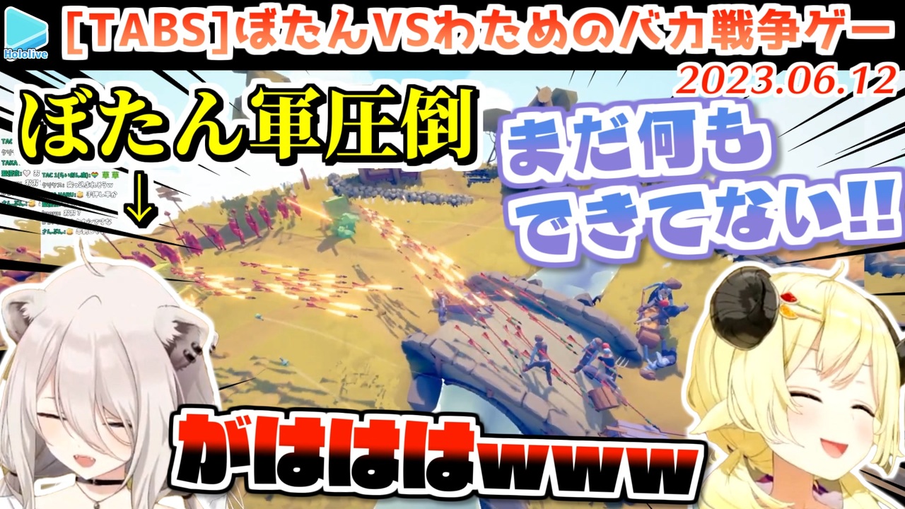 つられてわろてまう<br><br>元動画様はこちら<br>【TABS】ららーいおんと物理演算!!!Totally Accurate Battle Simulator【角巻わため/ホロライブ4期生】<br><a href="https://youtu.be/WC1iWanaggo" target="_blank" rel="noopener nofollow">https://youtu.be/WC1iWanaggo</a><br><br>【TABS】物理ほわいとらいおん vs 物理ひつじ【獅白ぼたん/ホロライブ】<br><a href="https://youtu.be/HYdX3MO24mI" target="_blank" rel="noopener nofollow">https://youtu.be/HYdX3MO24mI</a><br><br>Watame Ch. 角巻わため <a href="https://t.co/gE06SdvpNX" target="_blank" rel="noopener nofollow">https://t.co/gE06SdvpNX</a><br>Botan Ch.獅白ぼたん <a href="https://t.co/IWecN1QB4o" target="_blank" rel="noopener nofollow">https://t.co/IWecN1QB4o</a><br /><span style="color: #b7b7b7; font-size: 10px;">ホロライブ切り抜き/なめたけ <a href="https://t.co/CBwJLnYR2c" target="_blank" rel="noopener nofollow">https://t.co/CBwJLnYR2c</a></span>