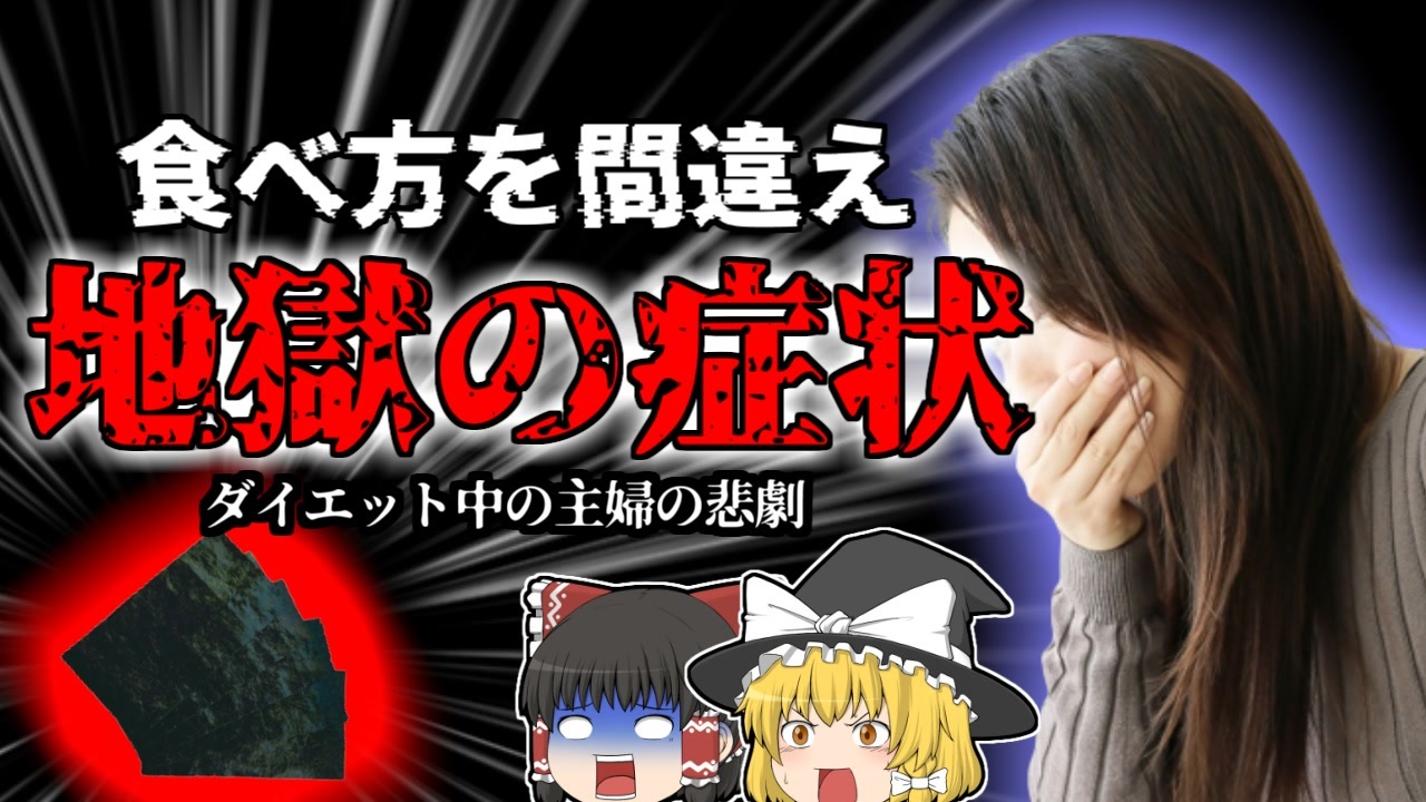 <a href="#" class="seekTime" data-seekTime="00:00" onclick="seekNicoPlayer('#00:00'); return false;">#00:00</a> 冒頭挨拶<br><a href="#" class="seekTime" data-seekTime="00:26" onclick="seekNicoPlayer('#00:26'); return false;">#00:26</a> 視聴上の注意<br><a href="#" class="seekTime" data-seekTime="1:01" onclick="seekNicoPlayer('#1:01'); return false;">#1:01</a> 本編開始<br><a href="#" class="seekTime" data-seekTime="1:24" onclick="seekNicoPlayer('#1:24'); return false;">#1:24</a> ダイエット<br><a href="#" class="seekTime" data-seekTime="2:22" onclick="seekNicoPlayer('#2:22'); return false;">#2:22</a> 減量中でも食べられるモノ<br><a href="#" class="seekTime" data-seekTime="2:40" onclick="seekNicoPlayer('#2:40'); return false;">#2:40</a> 海苔と食物繊維<br><a href="#" class="seekTime" data-seekTime="4:04" onclick="seekNicoPlayer('#4:04'); return false;">#4:04</a> テレビを見ながらおやつ代わりに<br><a href="#" class="seekTime" data-seekTime="4:27" onclick="seekNicoPlayer('#4:27'); return false;">#4:27</a> 異変<br><a href="#" class="seekTime" data-seekTime="4:48" onclick="seekNicoPlayer('#4:48'); return false;">#4:48</a> 地獄の症状<br><a href="#" class="seekTime" data-seekTime="5:31" onclick="seekNicoPlayer('#5:31'); return false;">#5:31</a> 原因は海苔の大量摂取<br><a href="#" class="seekTime" data-seekTime="6:46" onclick="seekNicoPlayer('#6:46'); return false;">#6:46</a> 一日の摂取量を大幅に超えていた<br><a href="#" class="seekTime" data-seekTime="7:38" onclick="seekNicoPlayer('#7:38'); return false;">#7:38</a> 海苔は日本人だけが消化できる?<br><a href="#" class="seekTime" data-seekTime="9:33" onclick="seekNicoPlayer('#9:33'); return false;">#9:33</a> 素晴らしい食品だが注意も必要<br><br><br>今回は以前リクエストを頂いていました、家庭での食中毒事例の一つを紹介したいと思います。<br>わが国の関東地方、某都市に暮らす主婦の女性「Aさん」はこの日、一日の仕事を終え、テレビを見ながら缶に入ったある食品をパクパクと食べていました。その後、就寝時間になると彼女は夫と共にベッドルームへ行き、すぐに眠ってしまいましたが、それから約数時間後。<br>腹部の痛みで目を覚ましてしまったため、薬をとりにリビングへと移動しようとしましたが、その最中に猛烈な吐き気の症状に襲われ、トイレに駆け込み、勢いよく嘔吐してしまいました。<br>続けて激しい下痢の症状にも襲われ、彼女は一晩中嘔吐と下痢を繰り返すという、地獄のような時間を味わうことに・・・<br>症状が少し落ち着いたところで、Aさんは夫に付き添われ、近くの夜間救急病院を受診しました。<br>そこではすぐに医師による診察、聞き取りが行われ、彼女を襲っていた症状の原因が判明。<br>それは、彼女が家で大量に食べていた、ある健康食品でした・・・<br><br>引用・出展・参考文献<br>公益財団法人 長寿科学振興財団<br>食物繊維の働きと一日の摂取量<br><a href="https://ishort.ink/7gyc" target="_blank" rel="noopener nofollow">https://ishort.ink/7gyc</a><br>e-ヘルスネット<br><a href="https://ishort.ink/8ifD" target="_blank" rel="noopener nofollow">https://ishort.ink/8ifD</a><br>ぬまた海苔<br><a href="https://ishort.ink/HqTz" target="_blank" rel="noopener nofollow">https://ishort.ink/HqTz</a><br>伊藤海苔店<br><a href="https://ishort.ink/GWrc" target="_blank" rel="noopener nofollow">https://ishort.ink/GWrc</a><br>その他視聴者提供資料など<br><br><br><br />※この動画は過去の事件を知り、現在でも同じことが発生する危険性を再認識、関与しないように促すための動画であり、視聴者を扇動、動揺を誘うためのコンテンツではありません。<br><br>ご要望にお応えして、メンバーシップの開設を行いました。<br>下記URLからも登録可能ですので、ご興味がある方は是非ご参加ください。<br><a href="https://www.youtube.com/channel/UCcT5a1J7XJW7CLYI2RKl4pw/join" target="_blank" rel="noopener nofollow">https://www.youtube.com/channel/UCcT5a1J7XJW7CLYI2RKl4pw/join</a><br><br><br>Twitter<br>→<a href="https://twitter.com/yukkurisurutoko" target="_blank" rel="noopener nofollow">https://twitter.com/yukkurisurutoko</a><br><br>取り急ぎ、簡易的にですがマイリストを作りました。<br>【ゆっくり解説】事故・事件関係紹介リスト <br><a href="https://www.nicovideo.jp/mylist/71034319" target="_blank" rel="noopener nofollow">https://www.nicovideo.jp/mylist/71034319</a><br>【ゆっくり解説】放射線系事故<br><a href="https://www.nicovideo.jp/mylist/71034368" target="_blank" rel="noopener nofollow">https://www.nicovideo.jp/mylist/71034368</a><br>【ゆっくり解説】鉄道系事故・事件関連<br><a href="https://www.nicovideo.jp/mylist/71034379" target="_blank" rel="noopener nofollow">https://www.nicovideo.jp/mylist/71034379</a>