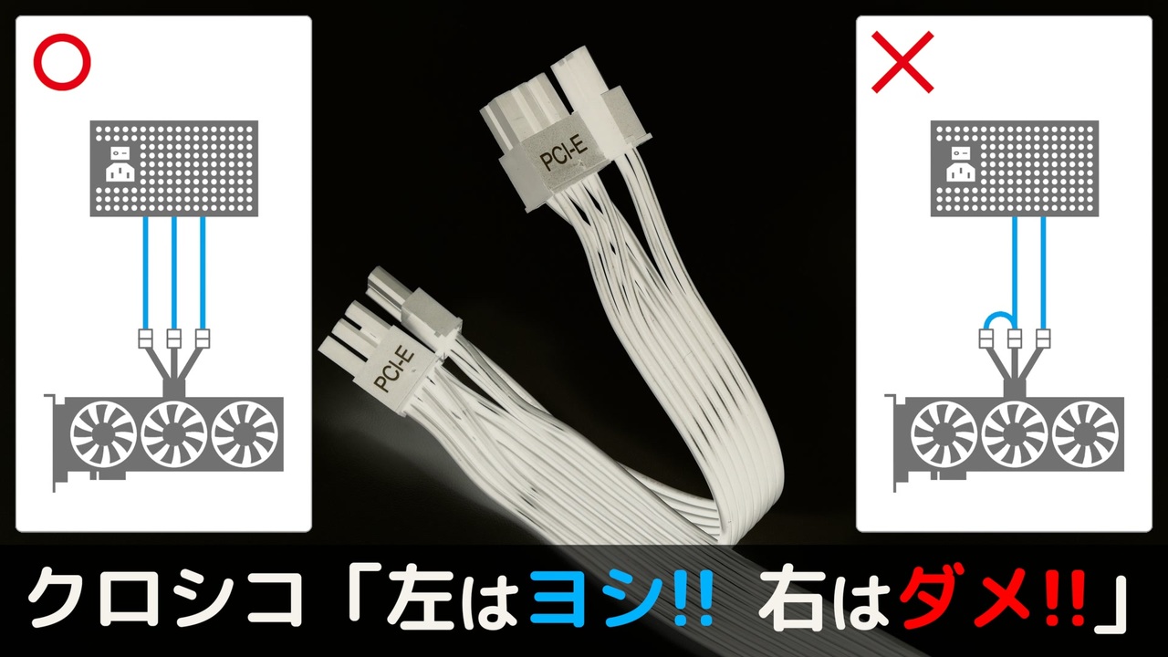 Vx2log #83<br>「のっとれこめんでっど」<br><br>▼この動画の関連ツイート(Twitter)<br><a href="https://twitter.com/dougaMAT/status/1669448781283332099" target="_blank" rel="noopener nofollow">https://twitter.com/dougaMAT/status/1669448781283332099</a><br>▼YouTube版<br><a href="https://youtu.be/lx_uK-KUJZg" target="_blank" rel="noopener nofollow">https://youtu.be/lx_uK-KUJZg</a><br><br>▼玄人志向のウェブサイト(ネタ元)<br>・RTX4000シリーズグラフィックボードなど、16ピン12VHPWR電源コネクタの接続に関する注意事項<br><a href="https://www.kuroutoshikou.com/support/detail/124157923_1674.html" target="_blank" rel="noopener nofollow">https://www.kuroutoshikou.com/support/detail/124157923_1674.html</a><br>・KRPW-PA1200W/92+(電源ユニット/製品情報ページ)<br><a href="https://www.kuroutoshikou.com/product/detail/krpw-pa1200w-92-.html" target="_blank" rel="noopener nofollow">https://www.kuroutoshikou.com/product/detail/krpw-pa1200w-92-.html</a><br><br>▼参考資料<br>OKI電線「導体構成表」<br><a href="https://www.okidensen.co.jp/jp/prod/cable/document/doutai_kousei.html" target="_blank" rel="noopener nofollow">https://www.okidensen.co.jp/jp/prod/cable/document/doutai_kousei.html</a><br>Molex「Mini-Fitコネクター」<br><a href="https://www.molex.com/ja-jp/products/connectors/wire-to-board-connectors/mini-fit-connectors" target="_blank" rel="noopener nofollow">https://www.molex.com/ja-jp/products/connectors/wire-to-board-connectors/mini-fit-connectors</a><br>Molex「Mini-Fitコネクターファミリー(PDF)」<br><a href="https://www.content.molex.com/dxdam/literature/987651-8523.pdf" target="_blank" rel="noopener nofollow">https://www.content.molex.com/dxdam/literature/987651-8523.pdf</a><br><br>▼関連動画<br>あかりチャンのジサカー豆知識 #05「知ってましたか? タブーなんですよ!」<br><a href="https://www.nicovideo.jp/watch/sm38260180" target="_blank" rel="noopener nofollow">https://www.nicovideo.jp/watch/sm38260180</a><br>Vx2log #13「エビの脱皮とMTBF」<br><a href="https://www.nicovideo.jp/watch/sm38245357" target="_blank" rel="noopener nofollow">https://www.nicovideo.jp/watch/sm38245357</a><br /><br>▼マイリスト│シリーズ<br>あかりチャンのジサカートーク <a href="https://www.nicovideo.jp/mylist/78957417" target="_blank" rel="noopener">mylist/78957417</a>│<a href="https://www.nicovideo.jp/series/534974" target="_blank" rel="noopener">series/534974</a><br>雑談遊園地 <a href="https://www.nicovideo.jp/mylist/78960043" target="_blank" rel="noopener">mylist/78960043</a>│<a href="https://www.nicovideo.jp/series/482597" target="_blank" rel="noopener">series/482597</a><br>サンディー葵のサーマルグリスレビュー <a href="https://www.nicovideo.jp/mylist/75985715" target="_blank" rel="noopener">mylist/75985715</a>│<a href="https://www.nicovideo.jp/series/442231" target="_blank" rel="noopener">series/442231</a><br>Vx2log (Voiceroid Video Log) <a href="https://www.nicovideo.jp/mylist/69233238" target="_blank" rel="noopener">mylist/69233238</a>│<a href="https://www.nicovideo.jp/series/152376" target="_blank" rel="noopener">series/152376</a><br>あかりチャンのジサカー豆知識 <a href="https://www.nicovideo.jp/mylist/69396079" target="_blank" rel="noopener">mylist/69396079</a>│<a href="https://www.nicovideo.jp/series/157584" target="_blank" rel="noopener">series/157584</a><br>茜ちゃんのジサカーダイアリー <a href="https://www.nicovideo.jp/mylist/68161709" target="_blank" rel="noopener">mylist/68161709</a>│<a href="https://www.nicovideo.jp/series/118134" target="_blank" rel="noopener">series/118134</a><br>茜ちゃんの自作PC実験室 <a href="https://www.nicovideo.jp/mylist/66369331" target="_blank" rel="noopener">mylist/66369331</a>│<a href="https://www.nicovideo.jp/series/56761" target="_blank" rel="noopener">series/56761</a><br>あかマキの自作PC雑学 <a href="https://www.nicovideo.jp/mylist/58055188" target="_blank" rel="noopener">mylist/58055188</a>│<a href="https://www.nicovideo.jp/series/27721" target="_blank" rel="noopener">series/27721</a><br>茜ちゃんの園芸日誌 <a href="https://www.nicovideo.jp/mylist/72520569" target="_blank" rel="noopener">mylist/72520569</a>│<a href="https://www.nicovideo.jp/series/293574" target="_blank" rel="noopener">series/293574</a><br><br>▼YouTubeチャンネル<br><a href="https://www.youtube.com/@dougaMAT" target="_blank" rel="noopener nofollow">https://www.youtube.com/@dougaMAT</a><br><br>■X <a href="https://twitter.com/dougaMAT" target="_blank" rel="noopener nofollow">https://twitter.com/dougaMAT</a><br>■なにかあればこちらまで matdouga@gmail.com