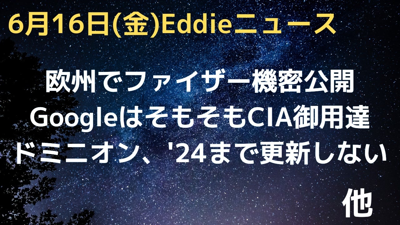 参考URL<br><a href="https://www.conservativereview.com/horowitz-confidential-pfizer-document-shows-the-company-observed-1-6-million-adverse-events-covering-nearly-every-organ-system-2661316948.html" target="_blank" rel="noopener nofollow">https://www.conservativereview.com/horowitz-confidential-pfizer-document-shows-the-company-observed-1-6-million-adverse-events-covering-nearly-every-organ-system-2661316948.html</a><br><br><a href="https://beckernews.com/newly-unsealed-court-docs-show-georgia-knew-about-vulnerable-dominion-software-refused-to-update-it-until-after-2024-election-50689/" target="_blank" rel="noopener nofollow">https://beckernews.com/newly-unsealed-court-docs-show-georgia-knew-about-vulnerable-dominion-software-refused-to-update-it-until-after-2024-election-50689/</a><br><br><a href="https://www.lifesitenews.com/news/british-journalist-shows-how-the-cia-played-a-direct-role-in-the-creation-of-google/" target="_blank" rel="noopener nofollow">https://www.lifesitenews.com/news/british-journalist-shows-how-the-cia-played-a-direct-role-in-the-creation-of-google/</a><br />Eddieと申します。<br>少し引棒めいたニュースを集めて喋っています。<br>よろしくお願いします。<br><br>23時過ぎYouTubeライブ配信(マイペース配信中)<br>「Eddieのホンマやと思うニュース3」<br><a href="https://www.youtube.com/channel/UCKaftD6X-qeHC5Vd9CMCedw" target="_blank" rel="noopener nofollow">https://www.youtube.com/channel/UCKaftD6X-qeHC5Vd9CMCedw</a><br><br>ニコ生は毎週土曜21時半〜(もしくは日曜21時半〜)<br><br>twitter<br>@Eddie2travel<br><br>YouTubeライブ配信1000回記念グッズなど販売中<br><a href="https://suzuri.jp/Eddie-Homma3" target="_blank" rel="noopener nofollow">https://suzuri.jp/Eddie-Homma3</a><br><br>