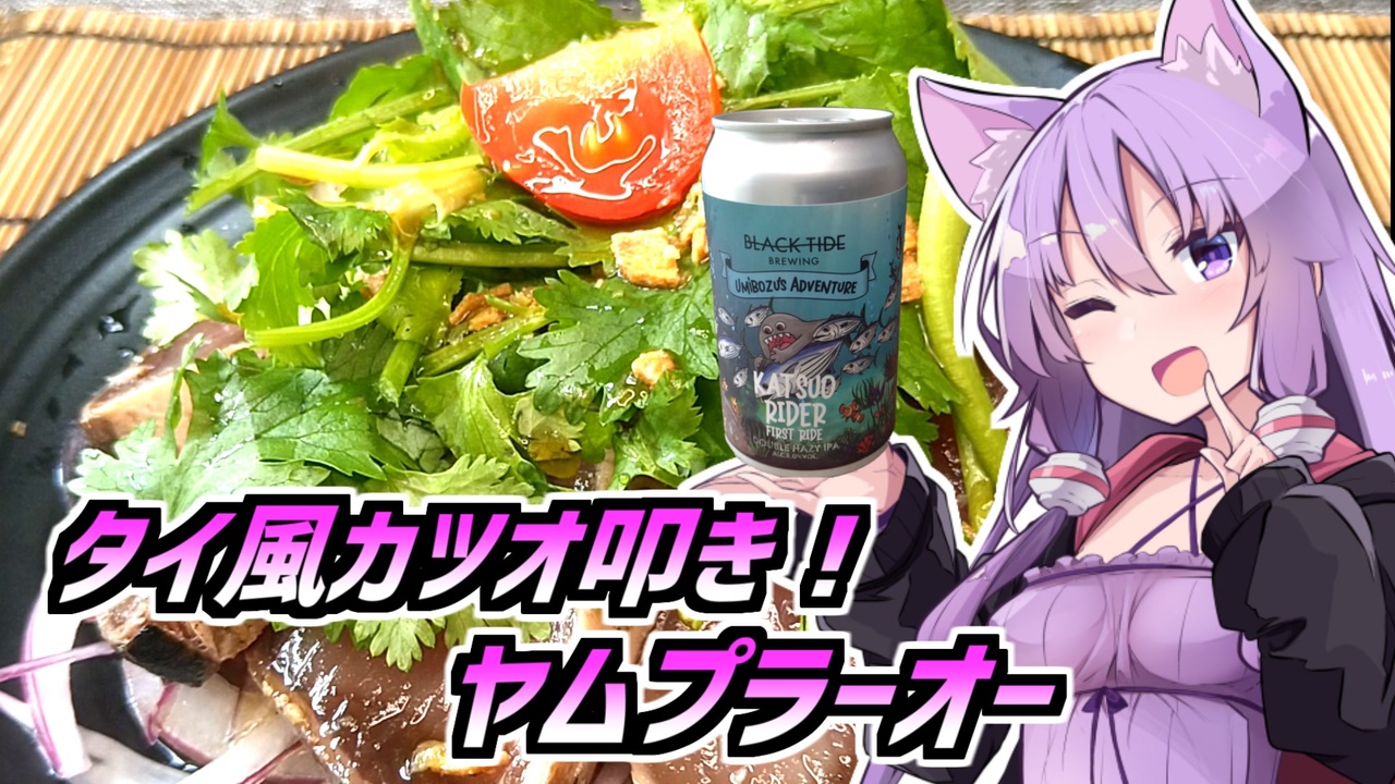 夏にさっぱりタイ風のカツオタタキをどうぞ!<br>ナンプラーはちょっと好みが分かれるかも?ですね。<br>本当はワラで炙る所からやりたかったんですが…諸般の事情でボツに。<br><br>-材料-<br>カツオの叩き 1/2本<br>赤タマネギ 1/2個<br>パクチー 1束<br><br>ナンプラー 大匙1<br>醤油 小匙2<br>ハチミツ 小匙1~2 (砂糖でも)<br>フライドガーリック 1つまみ<br>味見して調整!<br><br>お借りした素材は、クレジットとコンテンツツリーに登録させて頂きました。<br>きりたんの東北茶房シリーズはこちら<a href="https://www.nicovideo.jp/series/317014" target="_blank" rel="noopener">series/317014</a><br><br>※編集ミスにより投稿し直させて頂きました、申し訳ありません。<br><br><a target="_blank" href="https://qa.nicovideo.jp/faq/show/19424?site_domain=default" style="font-size: 13px;color: #657586; text-decoration: underline; line-height: 1.4">この動画は投稿者によって修正されました</a>
