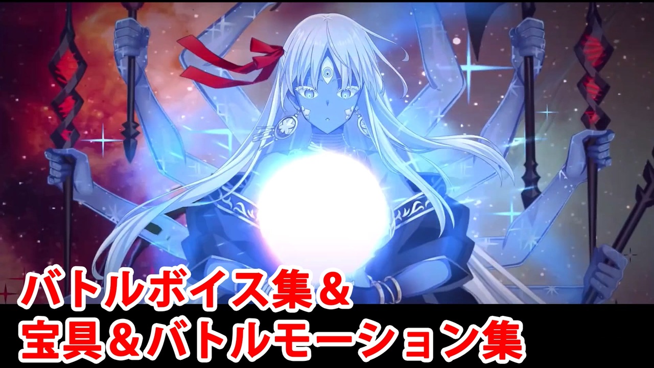 この動画は奏章Ⅰ「虚数羅針内界 ペーパームーン」のネタバレを含むのでご注意ください。<br><br>奏章Ⅰ「虚数羅針内界 ペーパームーン」の<br>カーリー(CV:下屋則子)のアタック、宝具、スキル使用、被ダメージ等のバトルモーションとバトルボイスのまとめです。<br><br>宝具「世界を砕く勝利の舞踊(サンハーラ・カーリー)」<br><br>【チャプター】<br><a href="#" class="seekTime" data-seekTime="0:00" onclick="seekNicoPlayer('#0:00'); return false;">#0:00</a> 忠告<br><a href="#" class="seekTime" data-seekTime="0:05" onclick="seekNicoPlayer('#0:05'); return false;">#0:05</a> シナリオ演出<br><a href="#" class="seekTime" data-seekTime="0:48" onclick="seekNicoPlayer('#0:48'); return false;">#0:48</a> 1戦目<br><a href="#" class="seekTime" data-seekTime="2:52" onclick="seekNicoPlayer('#2:52'); return false;">#2:52</a> 最終戦<br><br>※6/25にサムネとタイトルを変更しました。<br><br>YouTube版はこちら<br><a href="https://www.youtube.com/watch?v=pRI3ynlq2W4" target="_blank" rel="noopener nofollow">https://www.youtube.com/watch?v=pRI3ynlq2W4</a><br><br>投稿済ボイス集→<a href="https://www.nicovideo.jp/mylist/57873980" target="_blank" rel="noopener">mylist/57873980</a>、<a href="https://www.nicovideo.jp/mylist/68037946" target="_blank" rel="noopener">mylist/68037946</a><br>