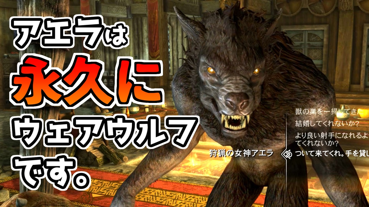 アエラを永続的なウェアウルフにして従者にします。ついでにファルカスもウェアウルフにして二人同時に従者にします。<br><br>目次:<br><a href="#" class="seekTime" data-seekTime="00:00" onclick="seekNicoPlayer('#00:00'); return false;">#00:00</a> アエラを永続的なウェアウルフにする方法<br><a href="#" class="seekTime" data-seekTime="01:27" onclick="seekNicoPlayer('#01:27'); return false;">#01:27</a> アエラのウェアウルフを維持する条件<br><a href="#" class="seekTime" data-seekTime="02:02" onclick="seekNicoPlayer('#02:02'); return false;">#02:02</a> 問題点<br><a href="#" class="seekTime" data-seekTime="02:31" onclick="seekNicoPlayer('#02:31'); return false;">#02:31</a> 同胞団クエストを完了する方法<br><a href="#" class="seekTime" data-seekTime="04:57" onclick="seekNicoPlayer('#04:57'); return false;">#04:57</a> ファルカスを永続的なウェアウルフにする方法<br><a href="#" class="seekTime" data-seekTime="06:33" onclick="seekNicoPlayer('#06:33'); return false;">#06:33</a> ウェアウルフ二人を同時に従者にする方法<br><a href="#" class="seekTime" data-seekTime="07:47" onclick="seekNicoPlayer('#07:47'); return false;">#07:47</a> 従者としてのウェアウルフ<br><a href="#" class="seekTime" data-seekTime="08:07" onclick="seekNicoPlayer('#08:07'); return false;">#08:07</a> 最後に<br><br>参考:<br>Xbox360/PlayStation3「The Elder Scrolls V:SKYRIM」日本語版wiki<br><a href="https://w.atwiki.jp/tes5/" target="_blank" rel="noopener nofollow">https://w.atwiki.jp/tes5/</a><br>Skyrim: How to make a permanent werewolf follower<br><a href="https://www.youtube.com/watch?v=FWGM9F1KnW0" target="_blank" rel="noopener nofollow">https://www.youtube.com/watch?v=FWGM9F1KnW0</a><br>TES V: Skyrim | Glitch | Pass through walls with Jelly<br><a href="https://www.youtube.com/watch?v=txrTlILEuLg" target="_blank" rel="noopener nofollow">https://www.youtube.com/watch?v=txrTlILEuLg</a><br><br>Twitter→<a href="https://twitter.com/mu_game_anime" target="_blank" rel="noopener nofollow">https://twitter.com/mu_game_anime</a>