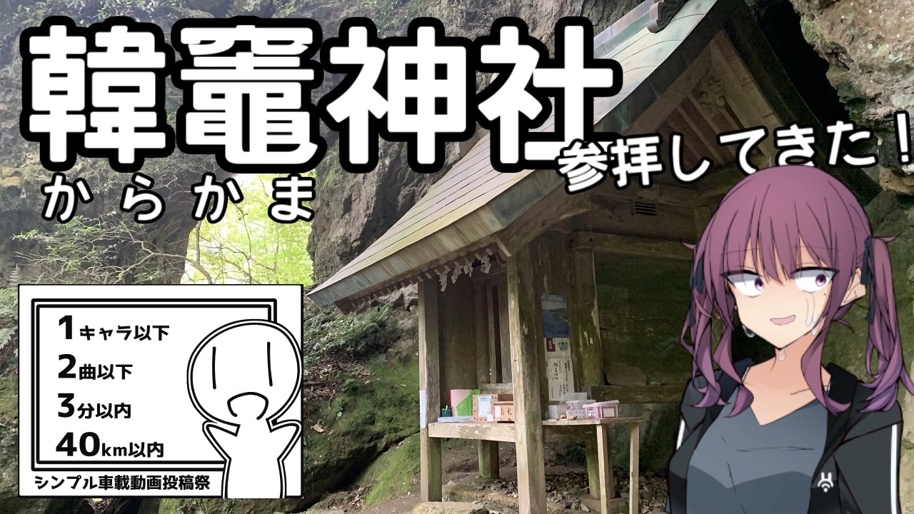 <span style="color: #9900ff; font-size: 24px;">夏色花梨、出雲大社の真裏にある出雲で最も険しいと言われる神社に挑む…!!</span><br><br><br><span style="color: #ff0000;"><strong>【本動画は、そーきさま(</strong></span><span style="color: #ff0000;"><a href="https://www.nicovideo.jp/user/347413" target="_blank" rel="noopener">user/347413</a></span><span style="color: #ff0000;"><strong>)主催、シンプル車載動画投稿祭参加作品です】</strong></span><br><strong>告知動画→<a href="https://www.nicovideo.jp/watch/sm42315076" class="watch">sm42315076</a></strong><br><br><br>■韓竈神社について(現地設置パンフレットより一部抜粋)<br> 駐車場より杉木立の中を800メートルほど進むと、右側に鳥居が現れる。鳥居をくぐり、急勾配で大小不揃いの自然石の石段を300段ほど登る。幅45センチほどの巨岩の隙間を通り抜けると、岸壁に囲まれた社がひっそりと鎮座する。<br> 社名のカラカマは、朝鮮半島から渡来した”釜”を意味するとされている。祭神のスサノオノミコトが新羅に渡られ、我が国に植林法やタタラ製法、鍛治技術などの石器文化を伝えたとされ、カラカマのカマは溶鉱炉を意味するとも言われる。また、韓竈神社が鎮座する岩窟は銅鉱石を採掘した穴だとの説もある。<br><br><br>-------------------------------------------------------<br>乗り換えのご案内です(*'▽')<br>【まちカドばいく <a href="https://www.nicovideo.jp/series/376301" target="_blank" rel="noopener">series/376301</a>】<br>【リトルカブお散歩手帖(完結) <a href="https://www.nicovideo.jp/series/298965" target="_blank" rel="noopener">series/298965</a>】<br>【琴葉+セイカと行くゆる~いバイク旅(完結) <a href="https://www.nicovideo.jp/series/46233" target="_blank" rel="noopener">series/46233</a>】<br>【迷列車山陰編(不定期更新) <a href="https://www.nicovideo.jp/series/37269" target="_blank" rel="noopener">series/37269</a>】<br>【はじめての一畑電車講座(超不定期更新) <a href="https://www.nicovideo.jp/series/264186" target="_blank" rel="noopener">series/264186</a>】<br>【その他ボイチェビ単発系 <a href="https://www.nicovideo.jp/series/286969" target="_blank" rel="noopener">series/286969</a>】<br>-------------------------------------------------------<br><br><br><br><a target="_blank" href="https://qa.nicovideo.jp/faq/show/19424?site_domain=default" style="font-size: 13px;color: #657586; text-decoration: underline; line-height: 1.4">この動画は投稿者によって修正されました</a>