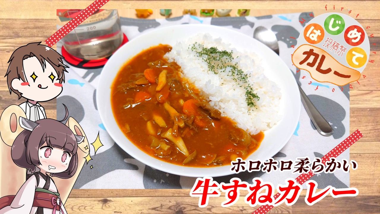 <span style="font-size: 16px;">今回は</span><span style="color: #ff0000; font-size: 18px;"><strong>namerou様</strong></span><span style="color: #ff0000;"><strong>(</strong></span><a href="https://www.nicovideo.jp/user/94401680" target="_blank" rel="noopener">user/94401680</a><span style="color: #ff0000;"><strong>)</strong></span><span style="color: #ff0000; font-size: 18px;"><strong>主催</strong></span><span style="color: #ff0000; font-size: 24px;"><strong>「</strong></span><span style="color: #ff0000; font-size: 18px;"><strong>はじめてカレー投稿祭(</strong></span><a href="https://www.nicovideo.jp/watch/sm41973284" class="watch">sm41973284</a><span style="color: #ff0000; font-size: 18px;"><strong>)</strong></span><span style="color: #ff0000; font-size: 24px;"><strong>」</strong></span><span style="font-size: 16px;">の参加動画になります!</span><br>今回はうp主が初めて作るビーフカレーです。<br><strong>けど普通のビーフカレーではつまらないと思ったので、牛スネをホロホロまでにしたカレーです!</strong><br><span style="font-size: 10px;">ちなみに学校が休みの日に撮影しました。</span><br><span style="color: #4a86e8; font-size: 16px;"><strong>Twitter(趣味混同)➡</strong></span><a href="https://twitter.com/atto0415" target="_blank" rel="noopener nofollow">https://twitter.com/atto0415</a>
