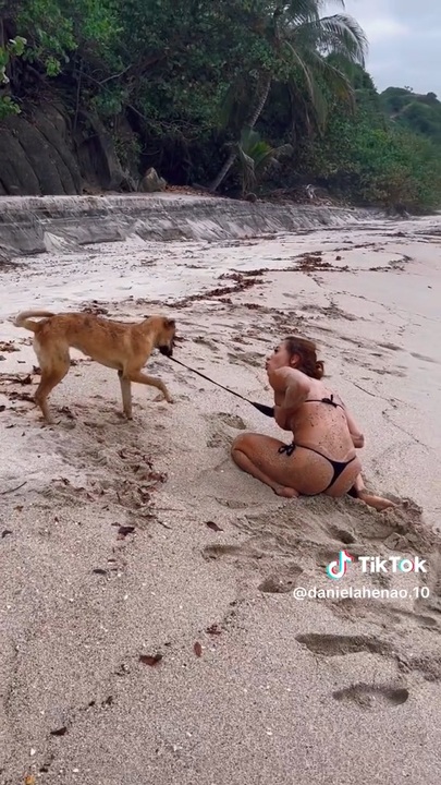 データ詳細 ホモと見る水着のひもを引っ張る犬