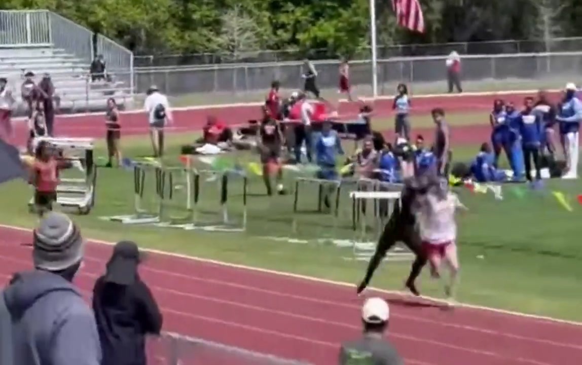 ホモと見る他の選手に体当たりする黒人陸上選手