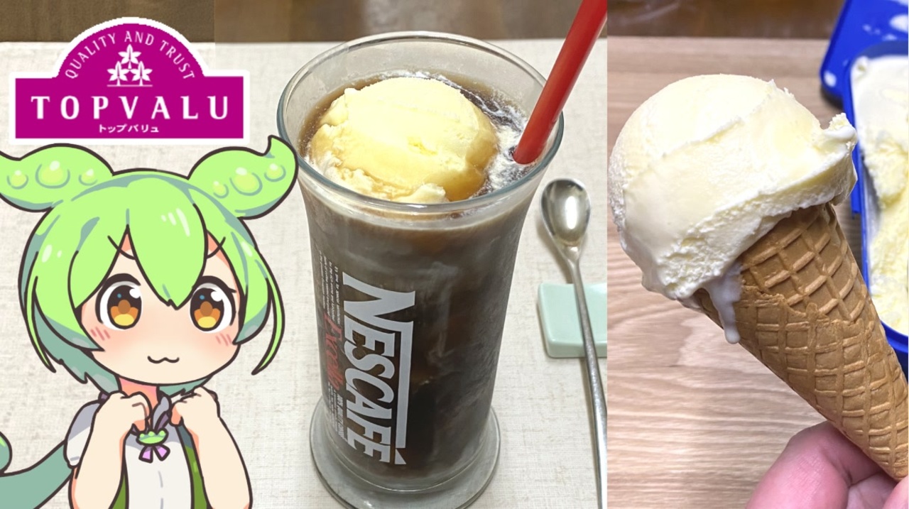 赤トプバアイスでコーヒーフロートを作ります。<br><br><br>【参考】<br>バニラアイスクリーム(トップバリュ)<br><a href="https://www.topvalu.net/items/detail/4549741994156/" target="_blank" rel="noopener nofollow">https://www.topvalu.net/items/detail/4549741994156/</a><br>日世(ニッセイホームページ)<br><a href="https://www.nissei-com.co.jp/" target="_blank" rel="noopener nofollow">https://www.nissei-com.co.jp/</a><br>コーヒーフロートの作り方(ネスレホームページ)<br><a href="https://nestle.jp/recipe/recipe/2500_2599/02538.php" target="_blank" rel="noopener nofollow">https://nestle.jp/recipe/recipe/2500_2599/02538.php</a><br><br><br>【使用した素材】(※敬称略)<br>(合成音声)VOICEVOX/ずんだもん/四国めたん<br><a href="https://voicevox.hiroshiba.jp/" target="_blank" rel="noopener nofollow">https://voicevox.hiroshiba.jp/</a><br>(立ち絵)坂本アヒル<br><a href="https://seiga.nicovideo.jp/seiga/im10788496" target="_blank" rel="noopener">im10788496</a>/<a href="https://seiga.nicovideo.jp/seiga/im10791276" target="_blank" rel="noopener">im10791276</a><br>(楽曲)甘茶の音楽工房/「楽しい麦畑」「フルーツパフェ」<br><a href="https://amachamusic.chagasi.com/" target="_blank" rel="noopener nofollow">https://amachamusic.chagasi.com/</a><br><br><br>【関連動画】<br>トップバリュ(赤)の「バニラアイスクリーム」<br><a href="https://www.youtube.com/watch?v=c_iLzRBc8Oc&ab_channel=maryu4492" target="_blank" rel="noopener nofollow">https://www.youtube.com/watch?v=c_iLzRBc8Oc&ab_channel=maryu4492</a><br>トップバリュの赤いヤツ「ダブルキャラメルアイスクリーム」<br><a href="https://www.youtube.com/watch?v=Z3_inwSNnN0&t=76s&ab_channel=maryu4492" target="_blank" rel="noopener nofollow">https://www.youtube.com/watch?v=Z3_inwSNnN0&t=76s&ab_channel=maryu4492</a><br>トップバリュの赤いヤツ「ニュージーランド産の生乳を使用ストロベリーアイスクリーム」<br><a href="https://www.youtube.com/watch?v=JvLO_LAKOLU&t=17s&ab_channel=maryu4492" target="_blank" rel="noopener nofollow">https://www.youtube.com/watch?v=JvLO_LAKOLU&t=17s&ab_channel=maryu4492</a><br>トップバリュの赤いヤツ「ニュージーランド産の生乳を使用チョコレートアイスクリーム」<br><a href="https://www.youtube.com/watch?v=NHlXF8SVbVw&t=13s&ab_channel=maryu4492" target="_blank" rel="noopener nofollow">https://www.youtube.com/watch?v=NHlXF8SVbVw&t=13s&ab_channel=maryu4492</a><br>トップバリュの赤いヤツ「ニュージーランド産の生乳を使用クッキー&クリームアイスクリーム」<br><a href="https://www.youtube.com/watch?v=0DVt-Eg7Ns4&t=6s&ab_channel=maryu4492" target="_blank" rel="noopener nofollow">https://www.youtube.com/watch?v=0DVt-Eg7Ns4&t=6s&ab_channel=maryu4492</a>