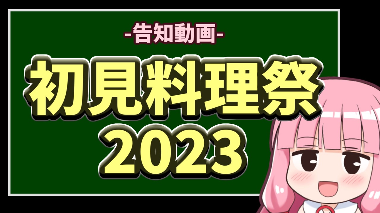 今年も沢山のご参加お待ちしております!<br><br>(6/24 23時追記)<br>上書き修正で以下の点を変更しました。<br>・Q&Aにて右枠に遅刻及びフライング投稿の話を追記しました。<br>・OPから挨拶の間のフェードイン/アウトの調整をしました。(自己満足)<br><br><br>========== 企画概要 ==========<br><br><strong>【レギュレーション】</strong><br>今まで食べたことのない現存する「初見料理」を作ること<br><br><strong>【開催期間】</strong><br>2023/9/15 0:00 ~ 9/18 23:59<br><br><strong>【参加方法】</strong><br>・「初見料理祭2023」のタグロック<br>・本告知動画の親作品登録<br><br><strong>【注意事項】</strong><br><u>○投稿者向け</u><br>1. 撮影前の試作の禁止<br>2. オリジナルメニューの禁止<br>3. 衛生上懸念のあるメニューの禁止<br>4. 合成音声ソフトの利用<br><br><u>○視聴者向け</u><br>1. レギュレーション警察の禁止<br>2. ガバへのマジレスの禁止(ほんわかレス推奨)<br><br><strong>【ご質問について】</strong><br>本動画のコメントもしくは以下ツイートへのリプライで受け付けます。<br>リプライではすぐ回答できますので急ぎの質問がありましたらこちらに。<br>↓質問リプ用ツイート<br><a href="https://twitter.com/tkwk_3/status/1673677130188636165" target="_blank" rel="noopener nofollow">https://twitter.com/tkwk_3/status/1673677130188636165</a><br><br>==============================<br><br><br />--- 以下共通説明文 ---<br><br><br><span style="color: #ff0000; font-size: 18px;"><strong>ちくわかさんのSUZURIストア開設!!!</strong></span><br>以下URLから是非チェックしてください!!!<br><a href="https://suzuri.jp/tkwk_3" target="_blank" rel="noopener nofollow">https://suzuri.jp/tkwk_3</a><br><br><br><strong>NicoFTのパートナーパス販売開始しました!</strong><br><a href="https://nicoft.io/users/tkwk_3" target="_blank" rel="noopener nofollow">https://nicoft.io/users/tkwk_3</a><br><br>X(Twitter) → <a href="https://twitter.com/tkwk_3" target="_blank" rel="noopener nofollow">https://twitter.com/tkwk_3</a><br><br><br>飯作って食べるでシリーズ→ <a href="https://www.nicovideo.jp/series/279573" target="_blank" rel="noopener nofollow">https://www.nicovideo.jp/series/279573</a><br>企画参加等の料理単発系→ <a href="https://www.nicovideo.jp/series/284572" target="_blank" rel="noopener nofollow">https://www.nicovideo.jp/series/284572</a><br>あもあす動画 → <a href="https://www.nicovideo.jp/series/318162" target="_blank" rel="noopener nofollow">https://www.nicovideo.jp/series/318162</a><br>料理以外の動画→ <a href="https://www.nicovideo.jp/series/309010" target="_blank" rel="noopener nofollow">https://www.nicovideo.jp/series/309010</a><br><br><br>【コンテンツツリー外の素材サイト】<br>MusMus 様 → <a href="https://musmus.main.jp" target="_blank" rel="noopener nofollow">https://musmus.main.jp</a><br>効果音ラボ 様 → <a href="https://soundeffect-lab.info" target="_blank" rel="noopener nofollow">https://soundeffect-lab.info</a><br>いらすとや 様 → <a href="https://www.irasutoya.com/" target="_blank" rel="noopener nofollow">https://www.irasutoya.com/</a><br><br><a target="_blank" href="https://qa.nicovideo.jp/faq/show/19424?site_domain=default" style="font-size: 13px;color: #657586; text-decoration: underline; line-height: 1.4">この動画は投稿者によって修正されました</a>