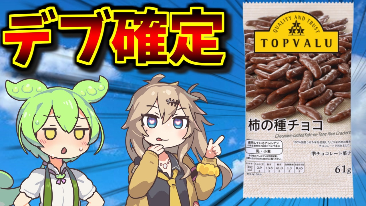 【お知らせ】今回から"いいね"のコメントを変えてみました、サボってずっと固定にしてたんですが、今後は出来れば動画ごとに編集します。<br><br>トップバリュの黄色ロゴの中で一番美味いお菓子を皆さんに紹介します。<br>マジで食べすぎ注意。<br><br>【動画で使わせていただいている素材等】<br>■音声ソフト:VOICEVOX様<br><a href="https://voicevox.hiroshiba.jp/" target="_blank" rel="noopener nofollow">https://voicevox.hiroshiba.jp/</a><br>■立ち絵:坂本アヒル様<br><a href="https://seiga.nicovideo.jp/seiga/im10788496" target="_blank" rel="noopener nofollow">https://seiga.nicovideo.jp/seiga/im10788496</a><br>■ニコニ・コモンズ様<br><a href="https://commons.nicovideo.jp/" target="_blank" rel="noopener nofollow">https://commons.nicovideo.jp/</a><br>■DOVA-SYNDROME様 <br><a href="https://dova-s.jp/bgm/play6388.html" target="_blank" rel="noopener nofollow">https://dova-s.jp/bgm/play6388.html</a><br>■ACイラスト様 <br><a href="https://www.ac-illust.com/" target="_blank" rel="noopener nofollow">https://www.ac-illust.com/</a><br>■いらすとや様<br><a href="https://www.irasutoya.com/" target="_blank" rel="noopener nofollow">https://www.irasutoya.com/</a><br>■みんちりえ様<br><a href="https://min-chi.material.jp/" target="_blank" rel="noopener nofollow">https://min-chi.material.jp/</a>