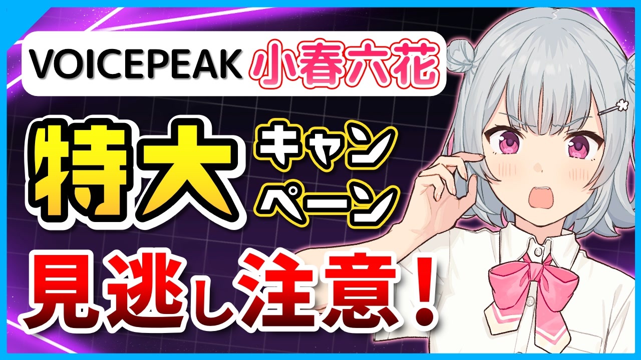 ボイスピーク小春六花の発売決定を記念して、関連製品ユーザーむけに開発版の無償提供キャンペーンが実施されてます。動画内でも解説してますが発売前までの期間限定なのでご注意ください。<br><br>▼YouTube版<br><a href="https://youtu.be/VuAWwSlkcfM" target="_blank" rel="noopener nofollow">https://youtu.be/VuAWwSlkcfM</a><br><br>【関係リンク】<br>▼開発版アクティベーションコード申請ページ<br><a href="https://tts-auth.dreamtonics.com/keymatchevent/1/vp_riikka_issuance" target="_blank" rel="noopener nofollow">https://tts-auth.dreamtonics.com/keymatchevent/1/vp_riikka_issuance</a><br>▼VOICEPEAKエディタ配付ページ<br><a href="https://www.ah-soft.com/voice/setup/" target="_blank" rel="noopener nofollow">https://www.ah-soft.com/voice/setup/</a><br>▼AHSユーザー登録サイト<br><a href="https://www.ah-soft.com/mypage/" target="_blank" rel="noopener nofollow">https://www.ah-soft.com/mypage/</a><br>▼キャンペーンおしらせ(TOKYO6)<br><a href="https://note.com/tokyo6/n/n1c90be51dc09" target="_blank" rel="noopener nofollow">https://note.com/tokyo6/n/n1c90be51dc09</a><br>▼キャンペーンFAQ(TOKYO6)<br><a href="https://note.com/tokyo6/n/n49c0368ca43e" target="_blank" rel="noopener nofollow">https://note.com/tokyo6/n/n49c0368ca43e</a><br>▼DTMステーション記事<br><a href="https://www.dtmstation.com/archives/61470.html" target="_blank" rel="noopener nofollow">https://www.dtmstation.com/archives/61470.html</a><br><br>▼Twitter<br> <a href="https://twitter.com/YuuPro_2022" target="_blank" rel="noopener nofollow">https://twitter.com/YuuPro_2022</a><br><br>▼出演<br>■小春六花:TOKYO6 様<br>■フリモメン:AHS 様<br><br>▼音声<br>■CeVIO AI 小春六花<br>■VOICEPEAK 小春六花(開発版)<br>■VOICEPEAK フリモメン<br><br>▼BGM<br>■甘茶の音楽工房 様:<a href="https://amachamusic.chagasi.com/" target="_blank" rel="noopener nofollow">https://amachamusic.chagasi.com/</a><br>■DOVA-SYNDROME 様:<a href="https://dova-s.jp/" target="_blank" rel="noopener nofollow">https://dova-s.jp/</a><br>■ポケットサウンド 様:<a href="https://pocket-se.info/" target="_blank" rel="noopener nofollow">https://pocket-se.info/</a><br>■PeriTune 様:<a href="https://peritune.com/" target="_blank" rel="noopener nofollow">https://peritune.com/</a>