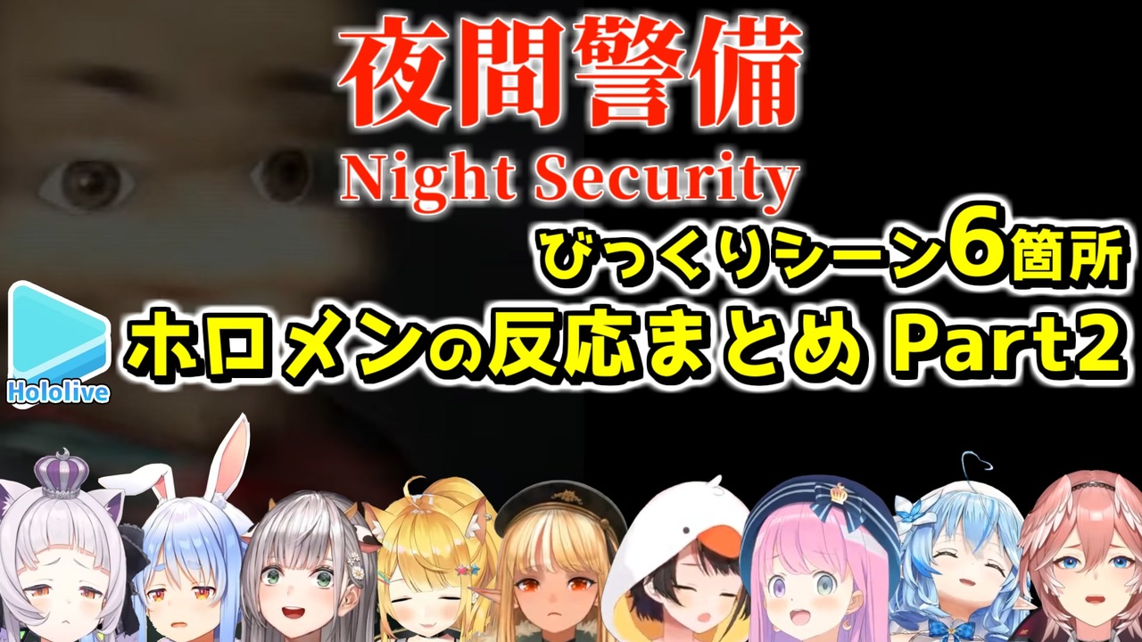 <a href="#" class="seekTime" data-seekTime="00:00" onclick="seekNicoPlayer('#00:00'); return false;">#00:00</a> 3階 エレベーター<br><a href="#" class="seekTime" data-seekTime="01:54" onclick="seekNicoPlayer('#01:54'); return false;">#01:54</a> 4階 トイレの幽霊<br><a href="#" class="seekTime" data-seekTime="06:06" onclick="seekNicoPlayer('#06:06'); return false;">#06:06</a> 5階 ヒューズ<br><a href="#" class="seekTime" data-seekTime="08:47" onclick="seekNicoPlayer('#08:47'); return false;">#08:47</a> 6階 ムーディーなおばちゃん<br><a href="#" class="seekTime" data-seekTime="14:00" onclick="seekNicoPlayer('#14:00'); return false;">#14:00</a> 7階 人形<br><a href="#" class="seekTime" data-seekTime="21:42" onclick="seekNicoPlayer('#21:42'); return false;">#21:42</a> 鬼ごっこ<br><a href="#" class="seekTime" data-seekTime="25:03" onclick="seekNicoPlayer('#25:03'); return false;">#25:03</a> 姫の7階・テイク2<br><br>元動画様はこちら<br>【 夜間警備 】夜勤の警備員することになったのらけど・・・サボりたいのら【姫森ルーナ/ホロライブ】<br><a href="https://youtu.be/aSCmrLkw4fI" target="_blank" rel="noopener nofollow">https://youtu.be/aSCmrLkw4fI</a><br><br>【 夜間警備 】泥酔して夜勤のお仕事するけど・・・いいのらよね?【姫森ルーナ/ホロライブ】<br><a href="https://youtu.be/6ZyIOiRaI3I" target="_blank" rel="noopener nofollow">https://youtu.be/6ZyIOiRaI3I</a><br><br>【#生スバル】夜間警備するしゅばああああああああああああああああああああああああああ!!!!!【ホロライブ/大空スバル】<br><a href="https://youtu.be/HtIt4Auar14" target="_blank" rel="noopener nofollow">https://youtu.be/HtIt4Auar14</a><br><br>【夜間警備】果たしてこの時間は夜間なのかっていう疑問(19時)【白銀ノエル/ホロライブ】<br><a href="https://youtu.be/4Llx0FHh3b8" target="_blank" rel="noopener nofollow">https://youtu.be/4Llx0FHh3b8</a><br><br>【夜間警備】すみません帰らせてください;;ぺこ!【ホロライブ/兎田ぺこら】<br><a href="https://youtu.be/c9td5_x8Iv4" target="_blank" rel="noopener nofollow">https://youtu.be/c9td5_x8Iv4</a><br><br>【夜間警備】最初で最後の最恐のホラゲー・・・【ホロライブ/紫咲シオン/猫又おかゆ】<br><a href="https://youtu.be/bSUk_VX7pHY" target="_blank" rel="noopener nofollow">https://youtu.be/bSUk_VX7pHY</a><br><br>【夜間警備】深夜に警備!?帰ってもいいですか?【ホロライブ/夜空メル】<br><a href="https://youtu.be/iOIucAcy-Pk" target="_blank" rel="noopener nofollow">https://youtu.be/iOIucAcy-Pk</a><br><br>【 夜間警備 】常に自宅を警備してる私には隙なんかない!【不知火フレア/ホロライブ】<br><a href="https://youtu.be/Bwp_ojBHH18" target="_blank" rel="noopener nofollow">https://youtu.be/Bwp_ojBHH18</a><br><br>【 夜間警備 】久々のホラゲ…。ホラー耐性リセットされました。【鷹嶺ルイ/ホロライブ】<br><a href="https://youtu.be/NoUf-0AThrk" target="_blank" rel="noopener nofollow">https://youtu.be/NoUf-0AThrk</a><br><br>【 夜間警備 】普通に無理なやつだと予想。【雪花ラミィ/ホロライブ】<br><a href="https://youtu.be/Brab2Tc1Ai0" target="_blank" rel="noopener nofollow">https://youtu.be/Brab2Tc1Ai0</a><br /><span style="color: #b7b7b7; font-size: 10px;">ホロライブ切り抜き/なめたけ <a href="https://t.co/CBwJLnYR2c" target="_blank" rel="noopener nofollow">https://t.co/CBwJLnYR2c</a></span>