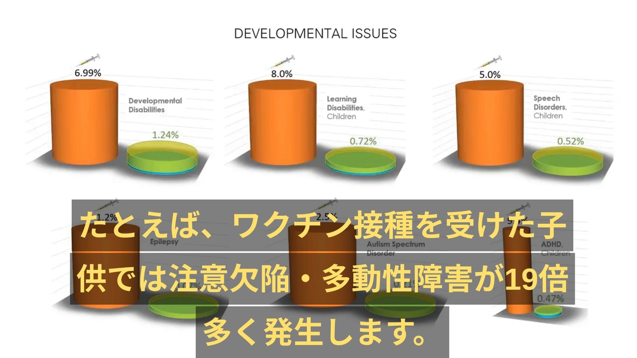 ・1482人完全未接種の大人と子供、病気の頻度や病気の有無を実際に測定。結果を国民健康統計と比較。<br>・ワクチン接種を受けた子どもは、少なくとも1つの慢性疾患にかかる確率が3.5倍以上、そして複数の慢性疾患を患う可能性が5.7倍になります。<br>・ワクチン接種を受けた成人は喘息や関節炎などの慢性疾患を患う可能性が9.5倍高い。<br>・接種する成人は2つの慢性疾患を患っている可能性が43倍<br>・接種する子供、喘息、湿疹、食物アレルギー、耳だれ、斜視、目の位置の問題、学習障害、言語障害、てんかん、<br>自閉症、注意欠陥・多動性障害などの発達障害や神経学的な問題がはるかに多い<br>・ワクチン接種者は消化器系疾患が44倍、慢性副鼻腔炎または副鼻腔感染症は207倍<br>・観測された完全未接種者は以上の病気が無い。<br>・あらゆるワクチンの全人口への副作用を研究する価値がある。<br>英語元動画:<a href="https://twitter.com/911Revisionist/status/1672327427383500800?s=20" target="_blank" rel="noopener nofollow">https://twitter.com/911Revisionist/status/1672327427383500800?s=20</a><br>The Control Group Website : <a href="https://www.thecontrolgroup.org/gallery" target="_blank" rel="noopener nofollow">https://www.thecontrolgroup.org/gallery</a><br>論文:<a href="https://cdn.website-editor.net/s/fbd2f2a8b1b04bdba97a21e6e5d356aa/files/uploaded/Control%2520Group%2520-FULL-report-updated.pdf?Expires=1689750887&Signature=s5uJagTiVcNrMoXTD~mcNBsRlPKFrV08IQc8cpmRmHiJ2Zc-HJ93wX-xnWzUyS5gT7lp7qaYmQrVye-cZM4PSaxAWuL6J7TgPn~6oANpOqpR6KNszjspjhIwe1fRLPrr75hgQrA91QHC5KzTRblCZ5grawmZFDc65CDVHfdGWbUJpRvZApznWXx00CfhoDHnl81ktjebaiMWFW7BjmxhKjq7DgLJkML9GWp8i01u-BrpmGoqGpTajB-~RtWGOo3cSv7z3VoZR4VxpAuPfX-cerbNMiHeYOHcYkNjvKm2x~mQSNsboKgnT1OveWKFVzQi2-qNeN5aIw6CN~Ts5MCMWA__&Key-Pair-Id=K2NXBXLF010TJW" target="_blank" rel="noopener nofollow">https://cdn.website-editor.net/s/fbd2f2a8b1b04bdba97a21e6e5d356aa/files/uploaded/Control%2520Group%2520-FULL-report-updated.pdf?Expires=1689750887&Signature=s5uJagTiVcNrMoXTD~mcNBsRlPKFrV08IQc8cpmRmHiJ2Zc-HJ93wX-xnWzUyS5gT7lp7qaYmQrVye-cZM4PSaxAWuL6J7TgPn~6oANpOqpR6KNszjspjhIwe1fRLPrr75hgQrA91QHC5KzTRblCZ5grawmZFDc65CDVHfdGWbUJpRvZApznWXx00CfhoDHnl81ktjebaiMWFW7BjmxhKjq7DgLJkML9GWp8i01u-BrpmGoqGpTajB-~RtWGOo3cSv7z3VoZR4VxpAuPfX-cerbNMiHeYOHcYkNjvKm2x~mQSNsboKgnT1OveWKFVzQi2-qNeN5aIw6CN~Ts5MCMWA__&Key-Pair-Id=K2NXBXLF010TJW</a>