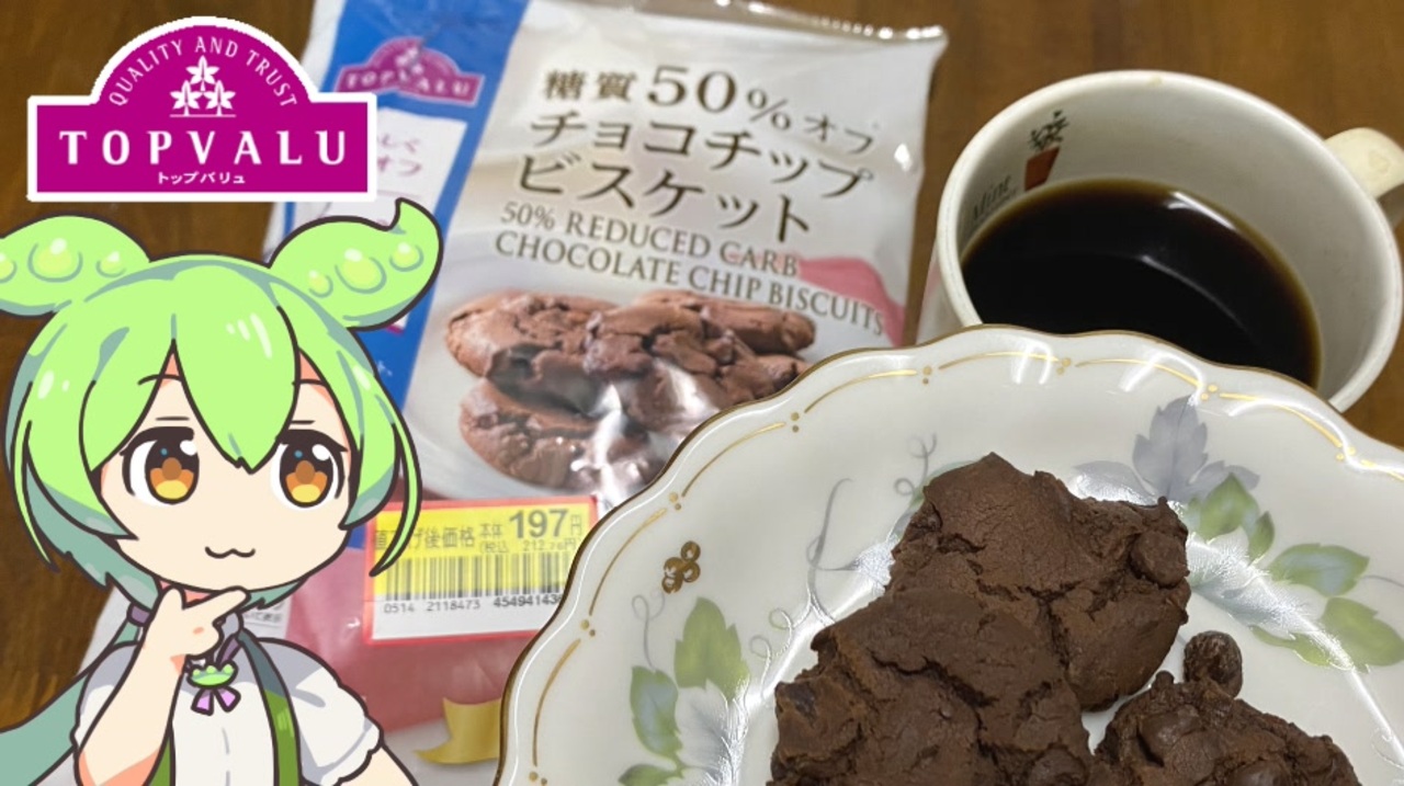 糖質を50パーセントカットしたチョコチップビスケットです。<br><br><br>【参考】<br>糖質50%オフチョコチップビスケット(トップバリュ)<br><a href="https://www.topvalu.net/items/detail/4549414361605/" target="_blank" rel="noopener nofollow">https://www.topvalu.net/items/detail/4549414361605/</a><br>チョコチップクッキー(ブルボン)<br><a href="https://www.bourbon.co.jp/product/detail/34877.html" target="_blank" rel="noopener nofollow">https://www.bourbon.co.jp/product/detail/34877.html</a><br>ビスケットとクッキーの違いは何ですか。(森永)<br><a href="https://morinaga-faq.dga.jp/faq_detail.html?id=21#:~:text=%E6%97%A5%E6%9C%AC%E3%81%A7%E3%81%AF%E3%80%81%E3%83%93%E3%82%B9%E3%82%B1%E3%83%83%E3%83%88%E3%81%A8%E3%82%AF%E3%83%83%E3%82%AD%E3%83%BC,%E4%BD%BF%E3%82%8F%E3%82%8C%E3%82%8B%E3%81%93%E3%81%A8%E3%82%82%E3%81%82%E3%82%8A%E3%81%BE%E3%81%99%E3%80%82" target="_blank" rel="noopener nofollow">https://morinaga-faq.dga.jp/faq_detail.html?id=21#:~:text=%E6%97%A5%E6%9C%AC%E3%81%A7%E3%81%AF%E3%80%81%E3%83%93%E3%82%B9%E3%82%B1%E3%83%83%E3%83%88%E3%81%A8%E3%82%AF%E3%83%83%E3%82%AD%E3%83%BC,%E4%BD%BF%E3%82%8F%E3%82%8C%E3%82%8B%E3%81%93%E3%81%A8%E3%82%82%E3%81%82%E3%82%8A%E3%81%BE%E3%81%99%E3%80%82</a><br><br><br><br>【使用した素材】(※敬称略)<br>(合成音声)VOICEVOX/ずんだもん/四国めたん<br><a href="https://voicevox.hiroshiba.jp/" target="_blank" rel="noopener nofollow">https://voicevox.hiroshiba.jp/</a><br>(立ち絵)坂本アヒル<br><a href="https://seiga.nicovideo.jp/seiga/im10788496" target="_blank" rel="noopener">im10788496</a>/<a href="https://seiga.nicovideo.jp/seiga/im10791276" target="_blank" rel="noopener">im10791276</a><br>(楽曲)甘茶の音楽工房/「楽しい麦畑」<br><a href="https://amachamusic.chagasi.com/" target="_blank" rel="noopener nofollow">https://amachamusic.chagasi.com/</a>