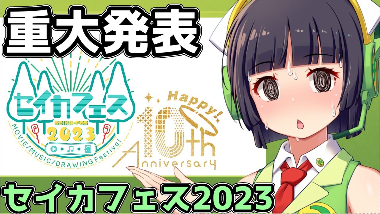 <span style="color: #ff0000; font-size: 24px;"><strong>セイカフェスの賞についてお知らせします!</strong></span><br>みんないっぱい投稿して・・・<br><br><span style="font-size: 18px;"><strong>賞の追加に伴い、開催期間が少し長くなりました!</strong></span><br>開催期間<br><span style="font-size: 16px;">7月1日 00:00 ~ 7月21日 23:59:59</span><br><br><span style="color: #0000ff; font-size: 18px;"><strong>お友達枠に夜語トバリさんも参戦が決定しました!<br>指定タグ 「夜語セイカ」</strong></span><br>*7月13日 21時追記<br><br><br>セイカフェス2023は京町セイカを主題とした歌、動画、イラストの投稿祭です。<br>大まかなルールなどについては、前回の動画(<a href="https://www.nicovideo.jp/watch/sm42250929" class="watch">sm42250929</a>)と説明文をご覧ください。<br><br>コンテストに参加しなくてもセイカフェスに参加してくださる皆さんは<br>動画内で言っている全体レギュレーションを守ってもらえれば参加OK!<br><br>セイカフェス2023応募フォーム<br><a href="https://forms.gle/jLqHHs8qPnECuui56" target="_blank" rel="noopener nofollow">https://forms.gle/jLqHHs8qPnECuui56</a><br><br>運営:京町セイカファンクラブ<br>協賛:精華町様<br>企画:シルシラ<br><br>セイカフェス10周年ロゴ制作:にじみこんいろ(@suidasisan) 様