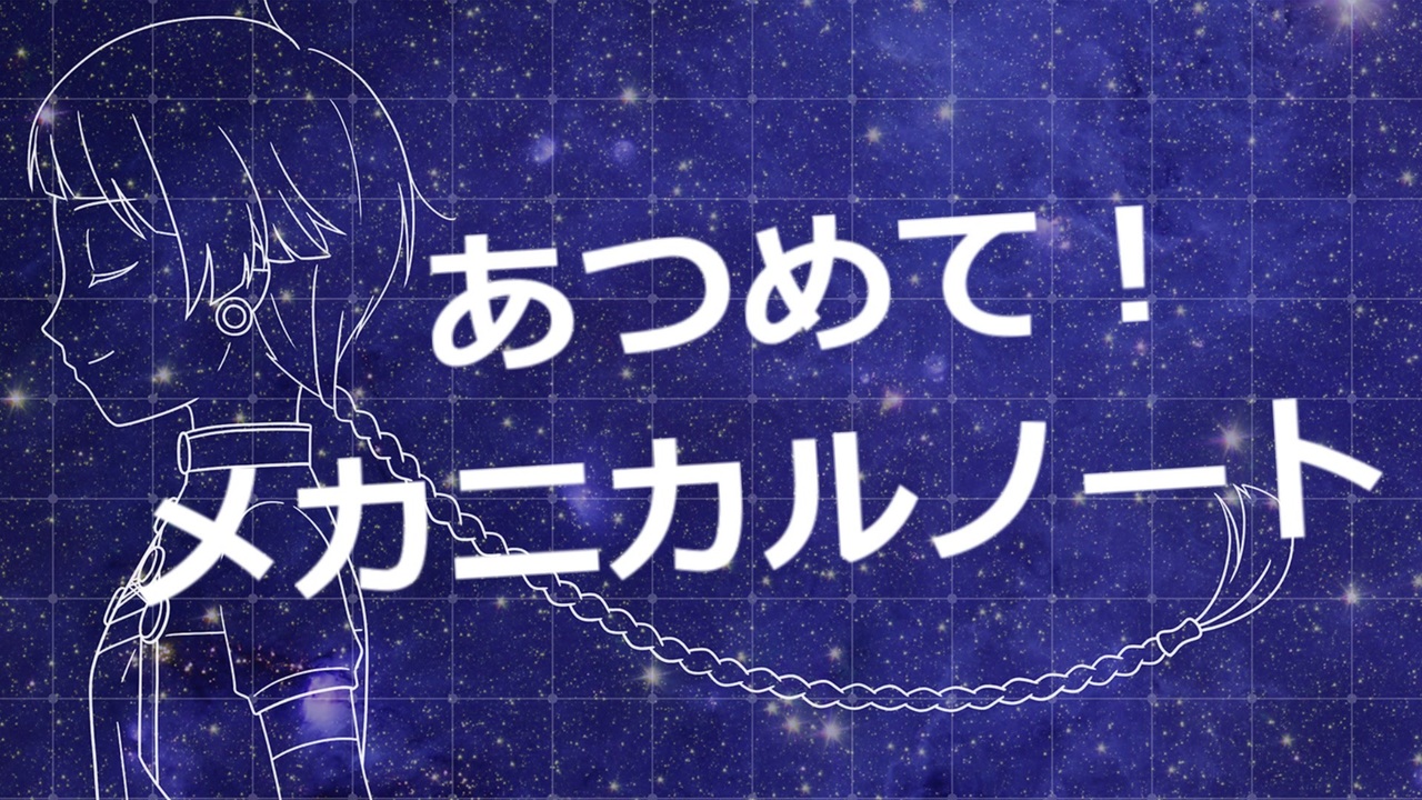 あつめて!メカニカルノート<br><br>「届け彼方に 星のまにまに<br> ペンをかざして 願い込めて」<br><br>■イラスト:じゃがバタさん<br><a href="https://piapro.jp/jagabata6" target="_blank" rel="noopener nofollow">https://piapro.jp/jagabata6</a><br><a href="https://twitter.com/jagabata6" target="_blank" rel="noopener nofollow">https://twitter.com/jagabata6</a><br><br>■Vocal:知声さん<br><br>■Music:やすを@DTMer<br><a href="https://twitter.com/byasuo" target="_blank" rel="noopener nofollow">https://twitter.com/byasuo</a><br><br>☆オフボ<br>コモンズ <a href="https://commons.nicovideo.jp/works/nc310444" target="_blank" rel="noopener nofollow">https://commons.nicovideo.jp/works/nc310444</a><br>ピアプロ <a href="https://piapro.jp/t/m9pv" target="_blank" rel="noopener nofollow">https://piapro.jp/t/m9pv</a>