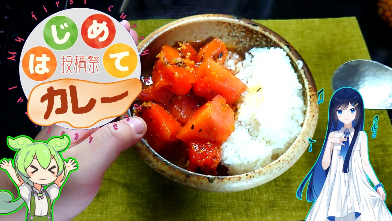 スイカカレー<br><span style="font-size: 24px;">ここで知った<br><a href="https://www.youtube.com/watch?v=AqHOm5w9exk" target="_blank" rel="noopener nofollow">https://www.youtube.com/watch?v=AqHOm5w9exk</a></span><br><br>初めてカレー投稿祭<br><a href="https://www.nicovideo.jp/watch/sm41973284" class="watch">sm41973284</a><br>ロゴはこちら → <a href="https://commons.nicovideo.jp/works/nc299851" target="_blank" rel="noopener">nc299851</a><br><br><span style="font-size: 24px;"><strong>全参加動画マイリスト<br><a href="https://www.nicovideo.jp/mylist/75353138" target="_blank" rel="noopener nofollow">https://www.nicovideo.jp/mylist/75353138</a></strong></span><br><br><br>VOICEVOX:ずんだもん<br>CEVIOAI:双葉湊<br><br>BGMはMusMus様のものを使用しています