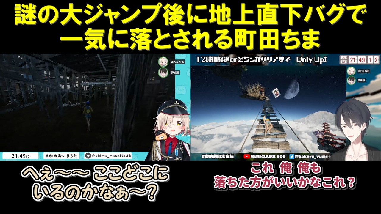 これミスって落ちてもエグいのに<br>バグで落とされちゃあダメージ倍増やで<br><br>本家参考動画<br>・町田ちま<br>【Only Up!】#ゆめおいまちた で耐久!頂上に立つのがどちらか、わからせてやるよ【にじさんじ/町田ちま/夢追翔】<br><a href="https://youtu.be/C7G1LS606N0" target="_blank" rel="noopener nofollow">https://youtu.be/C7G1LS606N0</a><br>・夢追翔<br>【Only Up!】耐久配信初心者は発狂せずに12時間鬼畜ゲーできるのか【#ゆめおいまちた /にじさんじ/夢追翔/町田ちま】<br><a href="https://youtu.be/bORD2LT0x2Y" target="_blank" rel="noopener nofollow">https://youtu.be/bORD2LT0x2Y</a><br><br>参考元チャンネル&Twitter<br>・町田ちま<br><a href="https://www.youtube.com/@MachitaChima" target="_blank" rel="noopener nofollow">https://www.youtube.com/@MachitaChima</a><br><a href="https://twitter.com/chima_machita23" target="_blank" rel="noopener nofollow">https://twitter.com/chima_machita23</a><br>・夢追翔<br><a href="https://www.youtube.com/@YumeoiKakeru" target="_blank" rel="noopener nofollow">https://www.youtube.com/@YumeoiKakeru</a><br><a href="https://twitter.com/kakeru_yumeoi" target="_blank" rel="noopener nofollow">https://twitter.com/kakeru_yumeoi</a><br><br>ニコニコのダイコンマンリスト<br>「バーチャルYouTuberシリーズ」↓<br><a href="https://www.nicovideo.jp/mylist/62551838" target="_blank" rel="noopener">mylist/62551838</a><br>「バーチャルYouTuberシリーズ2」↓<br><a href="https://www.nicovideo.jp/mylist/67858437" target="_blank" rel="noopener">mylist/67858437</a><br>「バーチャルYouTuberシリーズ3」↓<br><a href="https://www.nicovideo.jp/mylist/71340675" target="_blank" rel="noopener">mylist/71340675</a><br>「バーチャルYouTuberシリーズ4」↓<br><a href="https://www.nicovideo.jp/mylist/73995264" target="_blank" rel="noopener">mylist/73995264</a><br><br>ダイコンマンのTwitter<br><a href="https://twitter.com/Daikon_Man_V" target="_blank" rel="noopener nofollow">https://twitter.com/Daikon_Man_V</a>