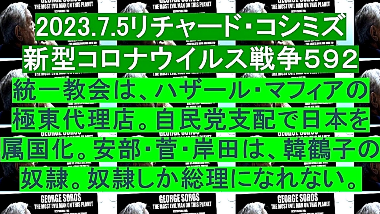 <span style="color: #cc4125;"><strong>「 テーマ : 新型コロナウイルス戦争 592 」</strong></span><br><br><span style="color: #ff0000;"><strong>「『 統一教会 』は、『 ハザール・マフィア 』の『 極東代理店 』。『 自民党支配 』で『 日本を属国化 』。<br> 『 安部・菅・岸田 』は、『 韓鶴子の奴隷 』。『 奴隷 』しか『 総理になれない 』」</strong></span><br><br><span style="color: #0000ff;"><strong>「『 イベルメクチン・アビガン・その他コロナ対策 』について、ご意見をお寄せ下さい! 」<br><br> ◐ E-mail:richardkoshimizu@gmail.com</strong></span><br><br><strong>◐「クリエイター・サポート」・「ニコニ広告」・「フォロー」等、ご協力の程宜しくお願い致します。RK</strong><br><br><span style="color: #38761d;"><strong>◐ リチャード・コシミズ 講演会 公式 動画ギャラリー</strong></span><br> <span style="color: #38761d;"><strong><a href="http://www.t-sskk.com/richardkoshimizu/video-gallery/index.html" target="_blank" rel="noopener nofollow">http://www.t-sskk.com/richardkoshimizu/video-gallery/index.html</a><br><br>◐ リチャード・コシミズ 講演会 「 ニコニコ生放送『 LIVE 』」</strong></span><br> <span style="color: #38761d;"><strong><a href="https://bit.ly/3Bx8F5w" target="_blank" rel="noopener nofollow">https://bit.ly/3Bx8F5w</a><br><br>◐ リチャード・コシミズ 『 ニコニコ チャンネル 』</strong></span><br> <span style="color: #38761d;"><strong><a href="https://ch.nicovideo.jp/richardkoshimizu" target="_blank" rel="noopener nofollow">https://ch.nicovideo.jp/richardkoshimizu</a><br><br>◐ リチャード・コシミズ 公式 ブログ</strong></span><br> <span style="color: #38761d;"><strong><a href="http://08054623210.jugem.jp/" target="_blank" rel="noopener nofollow">http://08054623210.jugem.jp/</a><br><br>◐ リチャード・コシミズ 公式 ホームページ<br> <a href="http://richardkoshimizu.boo.jp/" target="_blank" rel="noopener nofollow">http://richardkoshimizu.boo.jp/</a></strong></span><br>