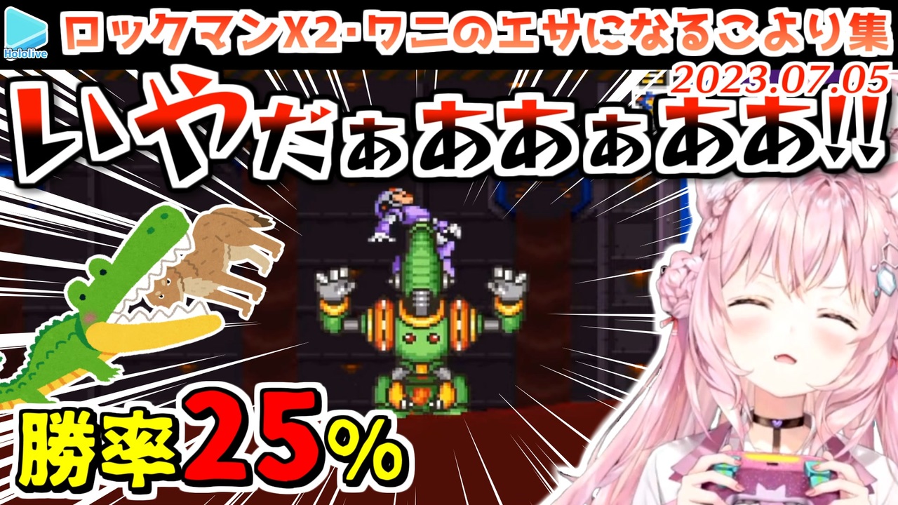 コヨーテがワニに勝てるわけがなかった<br><br><a href="#" class="seekTime" data-seekTime="00:00" onclick="seekNicoPlayer('#00:00'); return false;">#00:00</a> 1戦目<br><a href="#" class="seekTime" data-seekTime="00:33" onclick="seekNicoPlayer('#00:33'); return false;">#00:33</a> 2戦目<br><a href="#" class="seekTime" data-seekTime="00:54" onclick="seekNicoPlayer('#00:54'); return false;">#00:54</a> 3戦目(おすすめ)<br><a href="#" class="seekTime" data-seekTime="03:11" onclick="seekNicoPlayer('#03:11'); return false;">#03:11</a> 4戦目<br><a href="#" class="seekTime" data-seekTime="03:24" onclick="seekNicoPlayer('#03:24'); return false;">#03:24</a> 5戦目<br><a href="#" class="seekTime" data-seekTime="05:11" onclick="seekNicoPlayer('#05:11'); return false;">#05:11</a> ボスラッシュ編・1戦目<br><a href="#" class="seekTime" data-seekTime="07:13" onclick="seekNicoPlayer('#07:13'); return false;">#07:13</a> ボスラッシュ編・2戦目<br><a href="#" class="seekTime" data-seekTime="08:42" onclick="seekNicoPlayer('#08:42'); return false;">#08:42</a> ボスラッシュ編・3戦目<br><br>元動画様はこちら<br>【ロックマンX2】完全初見いけ!へたっぴこよックマンX!!ダッシュジャンプとの闘い【博衣こより/ホロライブ】2023/06/26<br><a href="https://youtu.be/8z8f9k05t9E" target="_blank" rel="noopener nofollow">https://youtu.be/8z8f9k05t9E</a><br><br>【ロックマンX2】完全初見へたっぴこよックマンX!シグマステージ!クリアまでいけるか!?【博衣こより/ホロライブ】<br><a href="https://youtu.be/3SzCkwUQ6tQ" target="_blank" rel="noopener nofollow">https://youtu.be/3SzCkwUQ6tQ</a><br><br>Koyori ch. 博衣こより - holoX - <a href="https://t.co/U4G9NUjWs5" target="_blank" rel="noopener nofollow">https://t.co/U4G9NUjWs5</a><br /><span style="color: #b7b7b7; font-size: 10px;">ホロライブ切り抜き/なめたけ <a href="https://t.co/CBwJLnYR2c" target="_blank" rel="noopener nofollow">https://t.co/CBwJLnYR2c</a></span>