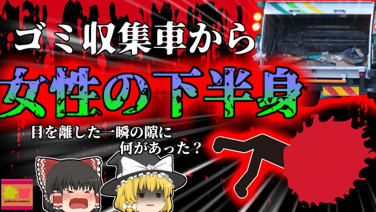 <a href="#" class="seekTime" data-seekTime="00:00" onclick="seekNicoPlayer('#00:00'); return false;">#00:00</a> 冒頭挨拶<br><a href="#" class="seekTime" data-seekTime="00:50" onclick="seekNicoPlayer('#00:50'); return false;">#00:50</a> 視聴上の注意<br><a href="#" class="seekTime" data-seekTime="1:17" onclick="seekNicoPlayer('#1:17'); return false;">#1:17</a> 本編開始<br><a href="#" class="seekTime" data-seekTime="1:36" onclick="seekNicoPlayer('#1:36'); return false;">#1:36</a> パッカー車<br><a href="#" class="seekTime" data-seekTime="2:35" onclick="seekNicoPlayer('#2:35'); return false;">#2:35</a> ごみ収集をしていた作業員男性「Aさん」<br><a href="#" class="seekTime" data-seekTime="2:47" onclick="seekNicoPlayer('#2:47'); return false;">#2:47</a> 作業内容<br><a href="#" class="seekTime" data-seekTime="3:14" onclick="seekNicoPlayer('#3:14'); return false;">#3:14</a> 地域に暮らす高齢者女性「Cさん」<br><a href="#" class="seekTime" data-seekTime="4:11" onclick="seekNicoPlayer('#4:11'); return false;">#4:11</a> Aさんが戻るとそこには…<br><a href="#" class="seekTime" data-seekTime="4:52" onclick="seekNicoPlayer('#4:52'); return false;">#4:52</a> 原因の調査<br><a href="#" class="seekTime" data-seekTime="5:15" onclick="seekNicoPlayer('#5:15'); return false;">#5:15</a> 稼働したまま手を入れていた?<br><a href="#" class="seekTime" data-seekTime="6:05" onclick="seekNicoPlayer('#6:05'); return false;">#6:05</a> 2度目の投入<br><a href="#" class="seekTime" data-seekTime="6:29" onclick="seekNicoPlayer('#6:29'); return false;">#6:29</a> その他の要因<br><a href="#" class="seekTime" data-seekTime="8:01" onclick="seekNicoPlayer('#8:01'); return false;">#8:01</a> 必要だった対策<br><br><br>今回紹介するのは、以前リクエストがありました、ゴミ収集業での事例の一つです。<br>わが国の本州、関西地方某所の路上ではこの日、市内のごみ収集業者による、ゴミ収集作業が行われていました。<br>この事業所に勤める男性「Aさん」「Bさん」の二人は、ゴミ収集車に乗り込み、早朝から所定のルートを回って、飲食店などから排出される、可燃ごみを収集してました。<br>その最中、近くの民家に暮らす女性「Cさん」は、家の前の道で掃き掃除をしており、目の前で作業をしていたAさんに「ちりとりのゴミを捨ててもいい?」と尋ねました。<br>Aさんはこれを承諾し、安全のため機械を停止させ、Cさんはちりとりの中身を、収集車の投入口へといれました。<br>Aさんはこれを確認すると、再び機械のスイッチを入れ、その状態で近くのゴミを週数していた、Bさんのもとにかけていき、ゴミを抱えて収集車に戻りました。<br>しかし、彼らが収集車に戻ってきたとき、そこには信じられない光景が広がっていたのです。<br><br>引用・出展・参考文献<br>ごみ収集車 | 極東開発工業株式会社<br><a href="https://ishort.ink/K9b4" target="_blank" rel="noopener nofollow">https://ishort.ink/K9b4</a><br>トラック王国ジャーナル パッカー車の仕組み<br><a href="https://ishort.ink/N4Tw" target="_blank" rel="noopener nofollow">https://ishort.ink/N4Tw</a><br>日本経済新聞<br><a href="https://ishort.ink/FwCX" target="_blank" rel="noopener nofollow">https://ishort.ink/FwCX</a><br>driverhacker.jp<br>パッカー車の安全対策方法とは?7つの管理方法で事故を防 ...<br><a href="https://ishort.ink/Un8f" target="_blank" rel="noopener nofollow">https://ishort.ink/Un8f</a><br><br><br><br><br />※この動画は過去の事件を知り、現在でも同じことが発生する危険性を再認識、関与しないように促すための動画であり、視聴者を扇動、動揺を誘うためのコンテンツではありません。<br><br>ご要望にお応えして、メンバーシップの開設を行いました。<br>下記URLからも登録可能ですので、ご興味がある方は是非ご参加ください。<br><a href="https://www.youtube.com/channel/UCcT5a1J7XJW7CLYI2RKl4pw/join" target="_blank" rel="noopener nofollow">https://www.youtube.com/channel/UCcT5a1J7XJW7CLYI2RKl4pw/join</a><br><br><br>Twitter<br>→<a href="https://twitter.com/yukkurisurutoko" target="_blank" rel="noopener nofollow">https://twitter.com/yukkurisurutoko</a><br><br>取り急ぎ、簡易的にですがマイリストを作りました。<br>【ゆっくり解説】事故・事件関係紹介リスト <br><a href="https://www.nicovideo.jp/mylist/71034319" target="_blank" rel="noopener nofollow">https://www.nicovideo.jp/mylist/71034319</a><br>【ゆっくり解説】放射線系事故<br><a href="https://www.nicovideo.jp/mylist/71034368" target="_blank" rel="noopener nofollow">https://www.nicovideo.jp/mylist/71034368</a><br>【ゆっくり解説】鉄道系事故・事件関連<br><a href="https://www.nicovideo.jp/mylist/71034379" target="_blank" rel="noopener nofollow">https://www.nicovideo.jp/mylist/71034379</a><br><br><a target="_blank" href="https://qa.nicovideo.jp/faq/show/19424?site_domain=default" style="font-size: 13px;color: #657586; text-decoration: underline; line-height: 1.4">この動画は投稿者によって修正されました</a>