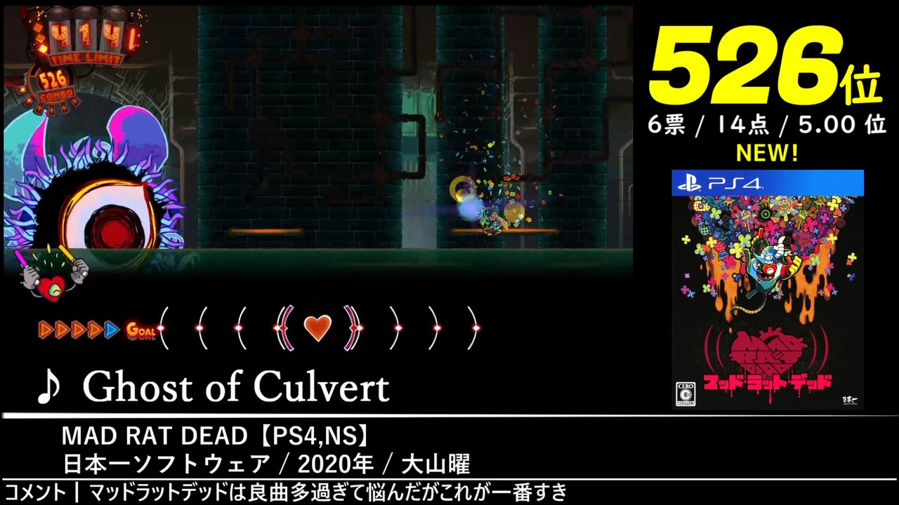 528位~502位の27曲を収録しています。<br>2022年5月1日~8月1日にかけて開催された「第15回みんなで決めるゲーム音楽ベスト100」の結果を動画化したものです。<span style="font-size: 10px;">集計人≠動画制作者</span><br><br>↓全体の結果はこちら↓<br><a href="https://w.atwiki.jp/gamemusicbest100/pages/9902.html" target="_blank" rel="noopener nofollow">https://w.atwiki.jp/gamemusicbest100/pages/9902.html</a><br><br><br>Part.19→<a href="https://www.nicovideo.jp/watch/sm42419468" class="watch">sm42419468</a><br>Part.21→<a href="https://www.nicovideo.jp/watch/sm42539415" class="watch">sm42539415</a><br>第15回まとめ→<a href="https://www.nicovideo.jp/mylist/74713060" target="_blank" rel="noopener">mylist/74713060</a><br><br><br>【ショートカット】<br>528位<a href="#" class="seekTime" data-seekTime="0:40" onclick="seekNicoPlayer('#0:40'); return false;">#0:40</a> / 527位<a href="#" class="seekTime" data-seekTime="2:57" onclick="seekNicoPlayer('#2:57'); return false;">#2:57</a> / 526位<a href="#" class="seekTime" data-seekTime="4:40" onclick="seekNicoPlayer('#4:40'); return false;">#4:40</a> / 525位<a href="#" class="seekTime" data-seekTime="7:03" onclick="seekNicoPlayer('#7:03'); return false;">#7:03</a> / 524位<a href="#" class="seekTime" data-seekTime="10:50" onclick="seekNicoPlayer('#10:50'); return false;">#10:50</a> / 523位<a href="#" class="seekTime" data-seekTime="12:59" onclick="seekNicoPlayer('#12:59'); return false;">#12:59</a> / 520位①<a href="#" class="seekTime" data-seekTime="16:46" onclick="seekNicoPlayer('#16:46'); return false;">#16:46</a> / 520位②<a href="#" class="seekTime" data-seekTime="19:50" onclick="seekNicoPlayer('#19:50'); return false;">#19:50</a> / 520位③<a href="#" class="seekTime" data-seekTime="21:32" onclick="seekNicoPlayer('#21:32'); return false;">#21:32</a> / 519位<a href="#" class="seekTime" data-seekTime="24:28" onclick="seekNicoPlayer('#24:28'); return false;">#24:28</a> / 518位<a href="#" class="seekTime" data-seekTime="26:28" onclick="seekNicoPlayer('#26:28'); return false;">#26:28</a> / 517位<a href="#" class="seekTime" data-seekTime="30:57" onclick="seekNicoPlayer('#30:57'); return false;">#30:57</a> / 516位<a href="#" class="seekTime" data-seekTime="32:51" onclick="seekNicoPlayer('#32:51'); return false;">#32:51</a> / 513位①<a href="#" class="seekTime" data-seekTime="35:00" onclick="seekNicoPlayer('#35:00'); return false;">#35:00</a> / 513位②<a href="#" class="seekTime" data-seekTime="39:41" onclick="seekNicoPlayer('#39:41'); return false;">#39:41</a> / 513位③<a href="#" class="seekTime" data-seekTime="43:36" onclick="seekNicoPlayer('#43:36'); return false;">#43:36</a> / 512位<a href="#" class="seekTime" data-seekTime="45:55" onclick="seekNicoPlayer('#45:55'); return false;">#45:55</a> / 511位<a href="#" class="seekTime" data-seekTime="47:58" onclick="seekNicoPlayer('#47:58'); return false;">#47:58</a> / 510位<a href="#" class="seekTime" data-seekTime="50:54" onclick="seekNicoPlayer('#50:54'); return false;">#50:54</a> / 509位<a href="#" class="seekTime" data-seekTime="53:40" onclick="seekNicoPlayer('#53:40'); return false;">#53:40</a> / 508位<a href="#" class="seekTime" data-seekTime="55:54" onclick="seekNicoPlayer('#55:54'); return false;">#55:54</a> / 507位<a href="#" class="seekTime" data-seekTime="59:11" onclick="seekNicoPlayer('#59:11'); return false;">#59:11</a> / 506位<a href="#" class="seekTime" data-seekTime="61:24" onclick="seekNicoPlayer('#61:24'); return false;">#61:24</a> / 505位<a href="#" class="seekTime" data-seekTime="65:03" onclick="seekNicoPlayer('#65:03'); return false;">#65:03</a> / 504位<a href="#" class="seekTime" data-seekTime="67:51" onclick="seekNicoPlayer('#67:51'); return false;">#67:51</a> / 503位<a href="#" class="seekTime" data-seekTime="71:00" onclick="seekNicoPlayer('#71:00'); return false;">#71:00</a> / 502位<a href="#" class="seekTime" data-seekTime="73:24" onclick="seekNicoPlayer('#73:24'); return false;">#73:24</a>