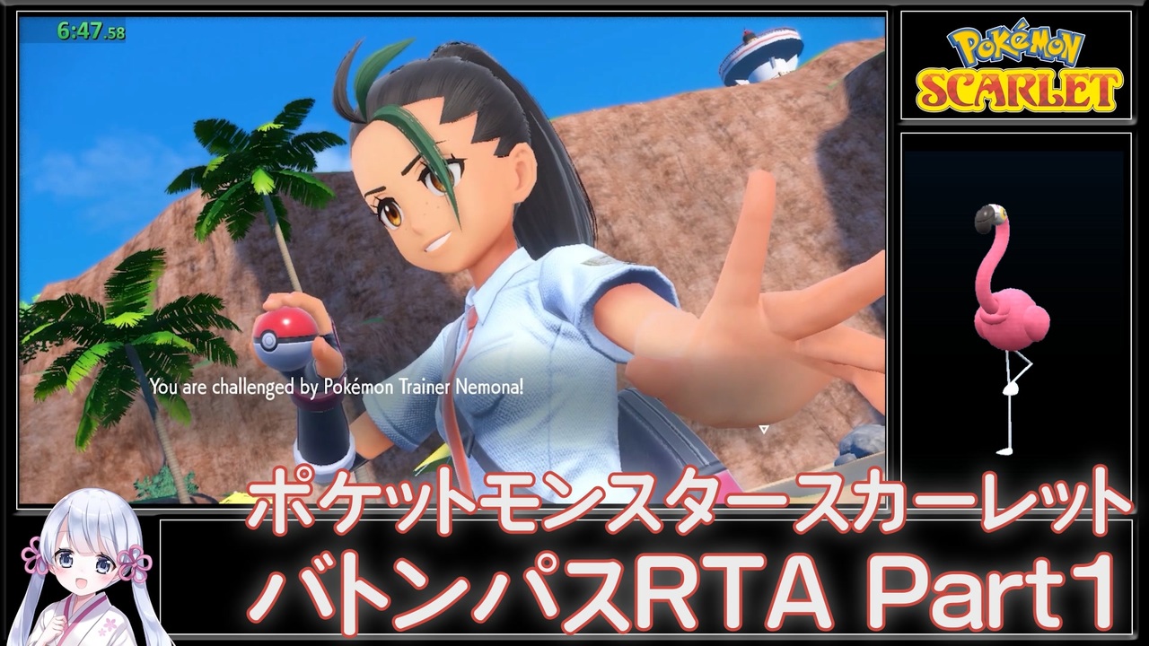 29匹も使うのは初投稿です。<br><br>■カテゴリー|Any% Glitchless ENG (Baton Pass)<br>・Speedrun.comの英語版ルールに準拠<br>・バグ技禁止で最後までクリアする<br>・計測区間|最初の移動入力~最終入力後の暗転まで<br>・ver1.3.1(プレイ時点での最新版)<br><br>■バトンパスルール<br>・ストーリー上の主要バトルにおいて、使用するポケモンを毎回変えなければならない<br>・進化系統が同じポケモンも、まとめて使用不可対象となる<br>NGな例<br>・「1番目のジムにホゲータを使用し、2番目のジムでアチゲータを使う」<br><br>SVでは先駆者がいなかったので、下記を主要バトルとしました<br>◎チャンピオンロード / Victory Road<br>・ジムリーダー<br>・ポケモンリーグ(四天王+オモダカ)<br>・ネモ最終戦<br>◎レジェンドルート / Path of Legends<br>・全5箇所のヌシ<br>・ペパー2戦目<br>◎スターダスト★ストリート / ★ Starfall Street ★<br>・全5箇所のボス<br>・クラベル戦<br>・ボタン戦<br><br>その他の一般トレーナー・野生戦は縛り対象外<br>2023/06/13 オフラインで達成<br><br>ルート(スプレッドシート)|<a href="https://docs.google.com/spreadsheets/d/1Reqv1VJTe832JqtzPTSsfPP1cE1r3jvH0QgUNduHv80/edit?usp=sharing" target="_blank" rel="noopener nofollow">https://docs.google.com/spreadsheets/d/1Reqv1VJTe832JqtzPTSsfPP1cE1r3jvH0QgUNduHv80/edit?usp=sharing</a><br>Youtube版(全編一括)|<a href="https://youtu.be/Qo8IqIzNe9k" target="_blank" rel="noopener nofollow">https://youtu.be/Qo8IqIzNe9k</a><br><br>Twitter|<a href="https://twitter.com/mizuki_aihr" target="_blank" rel="noopener nofollow">https://twitter.com/mizuki_aihr</a><br>Youtube|<a href="https://www.youtube.com/@mizukiaiharagaming5018" target="_blank" rel="noopener nofollow">https://www.youtube.com/@mizukiaiharagaming5018</a><br>Twitch|<a href="https://www.twitch.tv/mizukiaihara" target="_blank" rel="noopener nofollow">https://www.twitch.tv/mizukiaihara</a><br><br>前|なし<br>次|<a href="https://www.nicovideo.jp/watch/sm42451325" class="watch">sm42451325</a><br><br>解説|つくよみちゃん (フリー読み上げソフト COEIROINK を使用)<br>立ち絵|えみゃコーラ様<br>フリー素材キャラクターつくよみちゃん|<a href="https://tyc.rei-yumesaki.net/" target="_blank" rel="noopener nofollow">https://tyc.rei-yumesaki.net/</a>