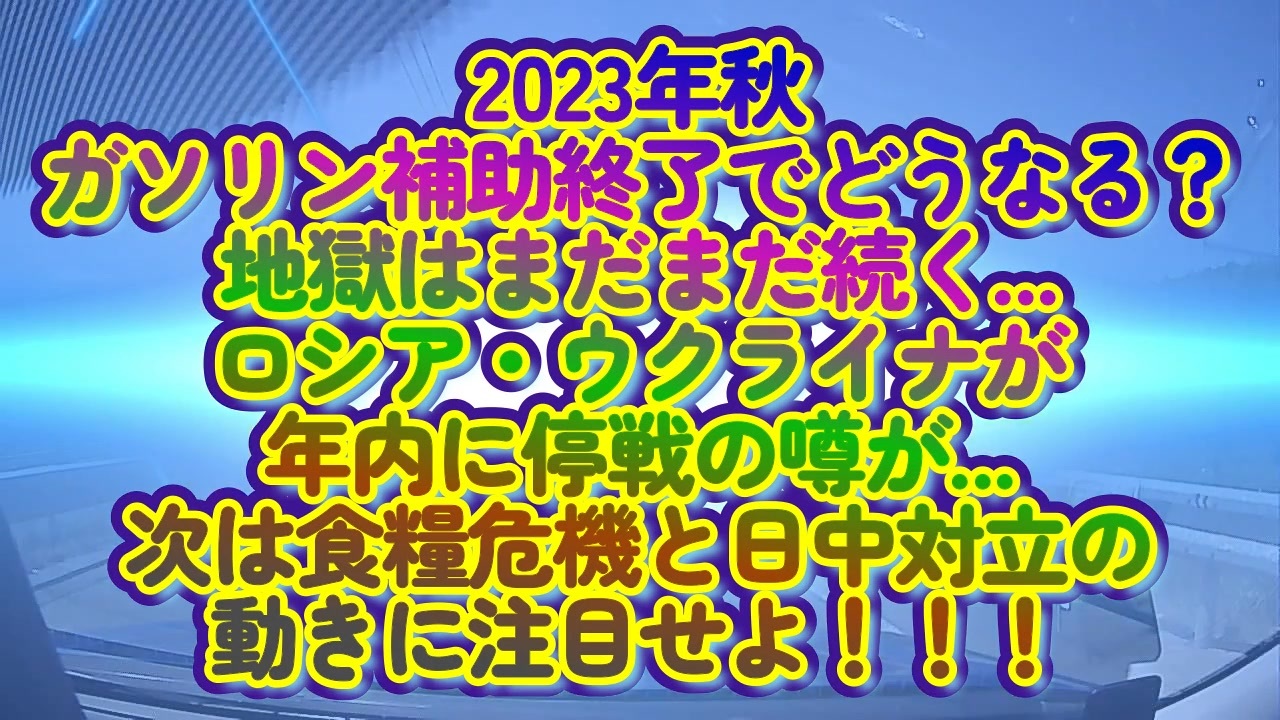 ロシア・ウクライナの停戦交渉の噂が出てきました。<br>次のアジア圏での戦争準備が出来たのでしょうか?<br>2023年秋よりガソリン補助が終了で日本の中小企業は<br>更に追い込まれていく予想ができます。<br>破壊されたダムの影響で穀倉地帯が壊滅です。<br>これにより小麦の生産が出来なくなり中東各国はアメリカやカナダから<br>小麦を買うでしょう。<br>なので日本も価格高騰は今でもありますが、今後は本格的に小麦不足がやってきます。<br><br>