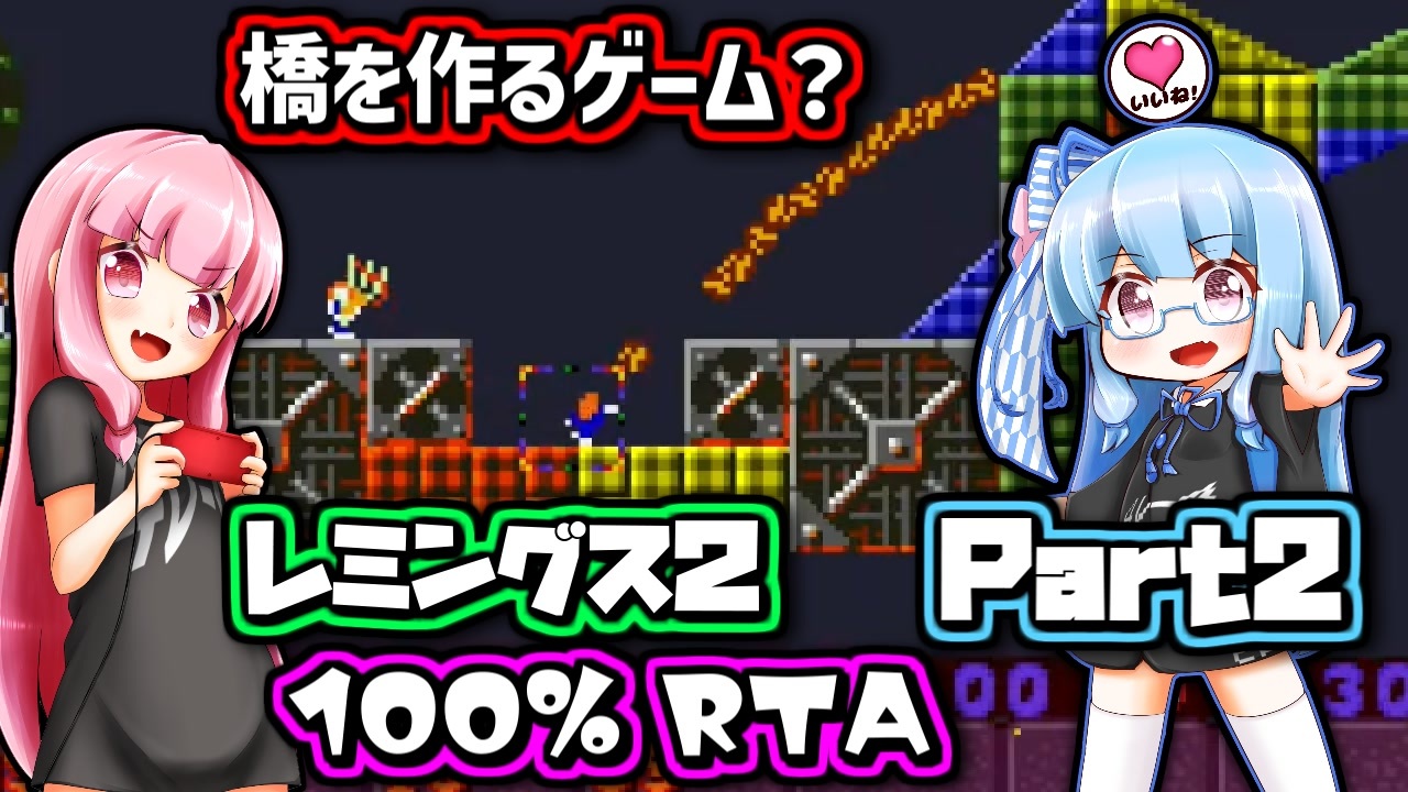 Lemmings 2: The Tribes のRTAパート2です!!<br>パート1を視聴してない方は前回の動画から御覧ください。<br><span style="color: #00ff00; font-size: 16px;"><strong><u>全救出縛り実況はこちら→<a href="https://www.nicovideo.jp/watch/sm39565084" class="watch">sm39565084</a></u></strong></span><br>SFC版では無くDOS版を走ったものです。<br>Speedrun.comで世界一位になりました(走者1名)<br>All Levels - MS-DOS, Gold%<br><a href="https://www.speedrun.com/lemmings_2_the_tribes/run/m70876wy" target="_blank" rel="noopener nofollow">https://www.speedrun.com/lemmings_2_the_tribes/run/m70876wy</a><br><br>テコ入れで "VOICEPEAKずんだもん" を導入しました。<br>この動画はニコ生とYoutubeの生放送にタイマーを付けて記録動画として編集したものです。<br><br><span style="color: #ff0000; font-size: 18px;"><u>いいねボタンを押すと重要情報が表示されます。</u></span><br>シリーズとして継続するつもりなので、応援の程よろしくおねがいします。<br><br>前→<a href="https://www.nicovideo.jp/watch/sm42419530" class="watch">sm42419530</a><br>次→<a href="https://www.nicovideo.jp/watch/sm42840617" class="watch">sm42840617</a><br>ボイロRTAマイリスト→ <a href="https://www.nicovideo.jp/mylist/71148298" target="_blank" rel="noopener">mylist/71148298</a><br /><span style="color: #00ff00; font-size: 18px;"><strong><u>RTA in biim 2025 winterにて、年末年始にRTAを走ります!!!!<br>↓イベントスケジュールはこちら↓<br><a href="https://horaro.org/rtainbiim/2025-w" target="_blank" rel="noopener nofollow">https://horaro.org/rtainbiim/2025-w</a></u></strong></span><br><s> </s><br>色んなシリーズを並行投稿中です!<br>気楽なRTAがしたい茜ちゃん→ <a href="https://www.nicovideo.jp/series/230433" target="_blank" rel="noopener">series/230433</a><br>すべてを救いたい葵ちゃん→ <a href="https://www.nicovideo.jp/series/273860" target="_blank" rel="noopener">series/273860</a><br>単発実況→<a href="https://www.nicovideo.jp/series/369107" target="_blank" rel="noopener">series/369107</a><br>AmongUs眼鏡部→<a href="https://www.nicovideo.jp/series/283075" target="_blank" rel="noopener">series/283075</a><br>音MADとか→<a href="https://www.nicovideo.jp/series/372491" target="_blank" rel="noopener">series/372491</a><br>Youtubeにも同時に投稿しています<br><a href="http://youtube.com/pirohiko?sub_confirmation=1" target="_blank" rel="noopener nofollow">http://youtube.com/pirohiko?sub_confirmation=1</a><br>Twitter: <a href="https://twitter.com/pirohiko" target="_blank" rel="noopener nofollow">https://twitter.com/pirohiko</a><br><u> </u><br><span style="color: #00ff00; font-size: 16px;"><strong>差し入れ感覚でクリエイターサポートしていただけると飛び跳ねて喜びます!<br><a href="https://creator-support.nicovideo.jp/registration/37189" target="_blank" rel="noopener nofollow">https://creator-support.nicovideo.jp/registration/37189</a></strong></span><br><s> </s><br><span style="color: #ff0000; font-size: 18px;"><strong>最新動画→<a href="https://www.nicovideo.jp/watch/sm45655408" class="watch">sm45655408</a></strong></span><br><span style="color: #4a86e8; font-size: 18px;"><strong>直近のオススメ→<a href="https://www.nicovideo.jp/watch/sm45655408" class="watch">sm45655408</a></strong></span><br><s> </s>