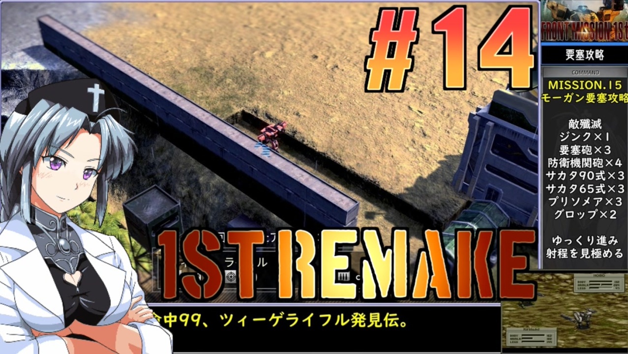 初ぶっ壊れライフルはあったんだ!なので初投稿です。<br>MISSION15.モーガン要塞攻略戦<br><br>◆FRONT MISSION the1st:REMAKE◆<br>1995年スクウェアより発売されたSRPG<br>南アメリカ付近に隆起した架空の島「ハフマン島」を巡る陰謀と<br>二足歩行戦車・ヴァンツァーでの戦いをえがいた作品。<br>2022年11月switch版発売2023年6月30日steam版発売<br>本プレイはsteam版の桜乃そら実況動画<br><br>◆ニコニコクリエイターサポート<br><a href="https://creator-support.nicovideo.jp/registration/1203831" target="_blank" rel="noopener nofollow">https://creator-support.nicovideo.jp/registration/1203831</a><br>動画制作の励みになります<br><br>◆Twitter<br><a href="https://twitter.com/ikamono8bit" target="_blank" rel="noopener nofollow">https://twitter.com/ikamono8bit</a><br>◆youtube<br><a href="http://www.youtube.com/c/IkamonoY" target="_blank" rel="noopener nofollow">http://www.youtube.com/c/IkamonoY</a><br><br>シリーズまとめ <a href="https://www.nicovideo.jp/user/1203831/series" target="_blank" rel="noopener nofollow">https://www.nicovideo.jp/user/1203831/series</a><br>作った動画全部 <a href="https://www.nicovideo.jp/mylist/42963985" target="_blank" rel="noopener">mylist/42963985</a><br>作った動画全部2<a href="https://www.nicovideo.jp/mylist/70404393" target="_blank" rel="noopener">mylist/70404393</a><br>FM1シリーズ <a href="https://www.nicovideo.jp/mylist/44840712" target="_blank" rel="noopener">mylist/44840712</a><br>FM2シリーズ <a href="https://www.nicovideo.jp/mylist/49797840" target="_blank" rel="noopener">mylist/49797840</a><br>FM3シリーズ <a href="https://www.nicovideo.jp/mylist/53164228" target="_blank" rel="noopener">mylist/53164228</a><br>FM4シリーズ <a href="https://www.nicovideo.jp/mylist/58678376" target="_blank" rel="noopener">mylist/58678376</a><br>FM5シリーズ <a href="https://www.nicovideo.jp/mylist/62245527" target="_blank" rel="noopener">mylist/62245527</a>