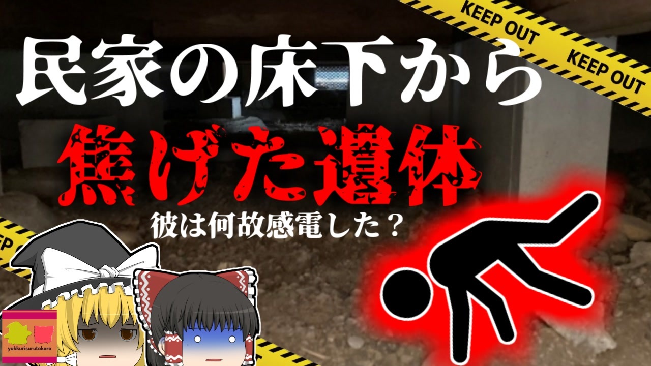 <a href="#" class="seekTime" data-seekTime="00:00" onclick="seekNicoPlayer('#00:00'); return false;">#00:00</a> 冒頭挨拶<br><a href="#" class="seekTime" data-seekTime="00:44" onclick="seekNicoPlayer('#00:44'); return false;">#00:44</a> 視聴上の注意<br><a href="#" class="seekTime" data-seekTime="1:14" onclick="seekNicoPlayer('#1:14'); return false;">#1:14</a> 本編開始<br><a href="#" class="seekTime" data-seekTime="1:56" onclick="seekNicoPlayer('#1:56'); return false;">#1:56</a> 市内の木造住宅での駆除<br><a href="#" class="seekTime" data-seekTime="2:44" onclick="seekNicoPlayer('#2:44'); return false;">#2:44</a> 主な駆除工法<br><a href="#" class="seekTime" data-seekTime="3:35" onclick="seekNicoPlayer('#3:35'); return false;">#3:35</a> Aさんが床下へ<br><a href="#" class="seekTime" data-seekTime="4:16" onclick="seekNicoPlayer('#4:16'); return false;">#4:16</a> 家主が異変に気付くが・・・<br><a href="#" class="seekTime" data-seekTime="5:14" onclick="seekNicoPlayer('#5:14'); return false;">#5:14</a> 床下で見たもの<br><a href="#" class="seekTime" data-seekTime="6:38" onclick="seekNicoPlayer('#6:38'); return false;">#6:38</a> 原因と要因の数々<br><a href="#" class="seekTime" data-seekTime="8:08" onclick="seekNicoPlayer('#8:08'); return false;">#8:08</a> 漏電防止がされていなかった<br><a href="#" class="seekTime" data-seekTime="8:54" onclick="seekNicoPlayer('#8:54'); return false;">#8:54</a> 安全衛生教育ナシ<br><a href="#" class="seekTime" data-seekTime="9:32" onclick="seekNicoPlayer('#9:32'); return false;">#9:32</a> 必要だった対策<br><br><br><br><br><br>今回紹介するのは、以前リクエストがありました、害虫駆除業での事例の一つです。<br>わが国の本州、関東地方某市にある民家ではこの日、市内の駆除業者による、シロアリ駆除作業が行われていました。<br>作業員男性「Aさん」「Bさん」の二人は、事業所から依頼のあった住宅へとトラックでむかい、家主と打ち合わせを行った後、和室の畳を剥がし、床下に換気扇などの装置を設置したあと、電動ドリルなどを使い、柱に穴をあけて、そこに薬液を注入するという作業を行いました。<br>この作業は分担して行われ、和室の床下はAさん、屋外からはBさんが作業にあたることに。<br>作業開始から、約4時間ほどが経過したころ。<br>Bさんのもとに、家主がやってきて、「和室の様子がおかしい」と話しかけました。<br>話を聞くと、先ほどまで換気扇とドリルの音がしていたのに、それが急にとまって、「ゴリゴリ」という不思議な音が聞こえるというのです。<br>Bさんはこれを受け、床下に合計3台設置していた換気扇を、順番にチェックしていくと、2つの換気扇の近くに、あおむけで作業をするAさんを発見しますが・・・<br><br>引用・出展・参考文献<br>生活害虫防除剤協議会<br><a href="https://ishort.ink/pGba" target="_blank" rel="noopener nofollow">https://ishort.ink/pGba</a><br>シロアリ110番 所要痔時間と作業工程<br><a href="https://ishort.ink/NB4k" target="_blank" rel="noopener nofollow">https://ishort.ink/NB4k</a><br>dendokougu-kan.com<br><a href="https://ishort.ink/W6E8" target="_blank" rel="noopener nofollow">https://ishort.ink/W6E8</a><br>接地(アース)| 電気設備の基礎知識 - Panasonic<br><a href="https://ishort.ink/wgLP" target="_blank" rel="noopener nofollow">https://ishort.ink/wgLP</a><br>ダスキン 笹沖支店害虫駆除blog<br><a href="https://ishort.ink/srLH" target="_blank" rel="noopener nofollow">https://ishort.ink/srLH</a><br>レスキューラボ シロアリ駆除の相場<br><a href="https://ishort.ink/hfqD" target="_blank" rel="noopener nofollow">https://ishort.ink/hfqD</a><br><br>