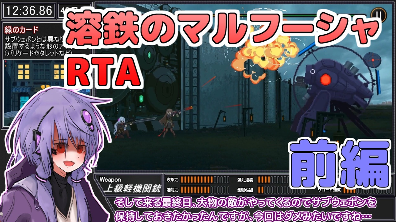 世界28位相当の記録です!(<span style="color: #d9d9d9;">走者39人</span>)<br><br><strong>溶鉄のマルフーシャ公式サイト</strong><br><a href="https://molteniron.lsv.jp/" target="_blank" rel="noopener nofollow">https://molteniron.lsv.jp/</a><br><br><strong>溶鉄のマルフーシャ販売ページへのリンク</strong><br>PC版(steam)<br><a href="https://store.steampowered.com/app/1456820/_/" target="_blank" rel="noopener nofollow">https://store.steampowered.com/app/1456820/_/</a><br>コンシューマ版(PLAYISM)<br><a href="https://playism.com/game/marfusha/" target="_blank" rel="noopener nofollow">https://playism.com/game/marfusha/</a><br><br><strong>著作表記</strong><br>© 2021 hinyari9 All Rights Resarved.<br><br><span style="color: #ff9900; font-size: 16px;">続きは来週の火曜日(7月25日)投稿予定です!</span><br><span style="font-size: 10px;">同時進行中のシリーズ<br>LOST JUDGMENT:裁かれざる記憶(実況プレイ) </span><a href="https://www.nicovideo.jp/series/417226" target="_blank" rel="noopener">series/417226</a><br>-----------------------------------------------<br>▪使用した素材について<br>使用素材させていただいた素材はコンテンツツリーに登録しています。<br>クリエイターの皆様に心より感謝申し上げます。<br />-----------------------------------------------<br>(以下共通説明文)<br>▪完結済みのシリーズ<br> ソフィーのアトリエ_RTA【<a href="https://www.nicovideo.jp/series/522874" target="_blank" rel="noopener">series/522874</a>】<br> フィリスのアトリエ_RTA【<a href="https://www.nicovideo.jp/series/525744" target="_blank" rel="noopener">series/525744</a>】<br> リディー&スールのアトリエ_RTA【<a href="https://www.nicovideo.jp/series/529157" target="_blank" rel="noopener">series/529157</a>】<br> ブレスオブファイア5_any%RTA【<a href="https://www.nicovideo.jp/series/348818" target="_blank" rel="noopener">series/348818</a>】<br> セブンスドラゴン2020_RTA【<a href="https://www.nicovideo.jp/series/362245" target="_blank" rel="noopener">series/362245</a>】<br> ペルソナ3ポータブル_RTA【<a href="https://www.nicovideo.jp/series/436395" target="_blank" rel="noopener">series/436395</a>】<br> 龍が如く極_RTA【<a href="https://www.nicovideo.jp/series/392914" target="_blank" rel="noopener">series/392914</a>】<br> JUDGE EYES 死神の遺言_RTA【<a href="https://www.nicovideo.jp/series/403065" target="_blank" rel="noopener">series/403065</a>】<br> 龍が如く7外伝_RTA【<a href="https://www.nicovideo.jp/series/466727" target="_blank" rel="noopener">series/466727</a>】<br> ゴリラが如く_RTA【<a href="https://www.nicovideo.jp/series/457736" target="_blank" rel="noopener">series/457736</a>】<br><br> LOST JUDGEMENT:裁かれざる記憶_実況プレイ【<a href="https://www.nicovideo.jp/series/417226" target="_blank" rel="noopener">series/417226</a>】<br> 龍が如く8_実況プレイ【<a href="https://www.nicovideo.jp/series/476524" target="_blank" rel="noopener">series/476524</a>】等々……<br><br>Twitter <a href="https://twitter.com/sumida_kuki" target="_blank" rel="noopener nofollow">https://twitter.com/sumida_kuki</a><br>YouTube <a href="http://www.youtube.com/@澄田クキ" target="_blank" rel="noopener nofollow">http://www.youtube.com/@澄田クキ</a>