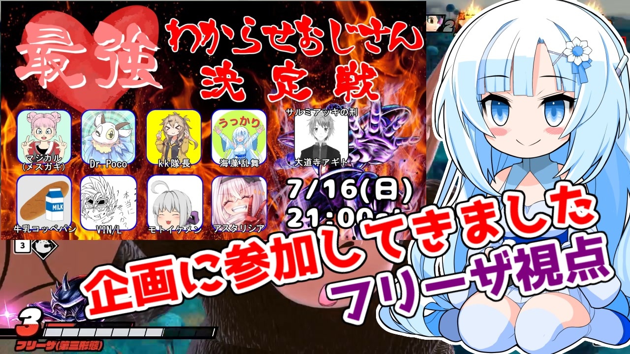 OSの再インストール疲れました<br><br>マジカル(メスガキ)さんの企画<br>最強わからせおじさん決定戦!!に参加させていただきました<br><br>参加者!!!<br><br>マジカル(メスガキ)さん <a href="https://www.nicovideo.jp/user/16043532" target="_blank" rel="noopener">user/16043532</a> 主催<br>Dr.pocoさん <a href="https://www.nicovideo.jp/user/117007224" target="_blank" rel="noopener">user/117007224</a><br>海藻乱舞さん <a href="https://www.nicovideo.jp/user/128788617" target="_blank" rel="noopener">user/128788617</a><br>KK隊長さん <a href="https://www.nicovideo.jp/user/24242403" target="_blank" rel="noopener">user/24242403</a><br>VIN/Lさん <a href="https://www.nicovideo.jp/user/123010347" target="_blank" rel="noopener">user/123010347</a><br>アスタリシアさん <a href="https://www.nicovideo.jp/user/1937506" target="_blank" rel="noopener">user/1937506</a><br>moto ikemenさん <a href="https://www.nicovideo.jp/user/4953605" target="_blank" rel="noopener">user/4953605</a><br><br><br><br><br><br><br>BGM:魔王魂様<br>URL:<a href="https://maou.audio/" target="_blank" rel="noopener nofollow">https://maou.audio/</a><br><br>使用ソフト<br>VOICEVOX:WhiteCUL<br>Aviutl<br><br><br>ツイッター:@Gyunyukopepan11<br><br><br><br><br><br><br><br><br><br><br><br><br>メスガキさん主催のイベント会場<br>7/16(日)21時開催<br><a href="https://www.youtube.com/watch?v=utrBRtR25XI" target="_blank" rel="noopener nofollow">https://www.youtube.com/watch?v=utrBRtR25XI</a>