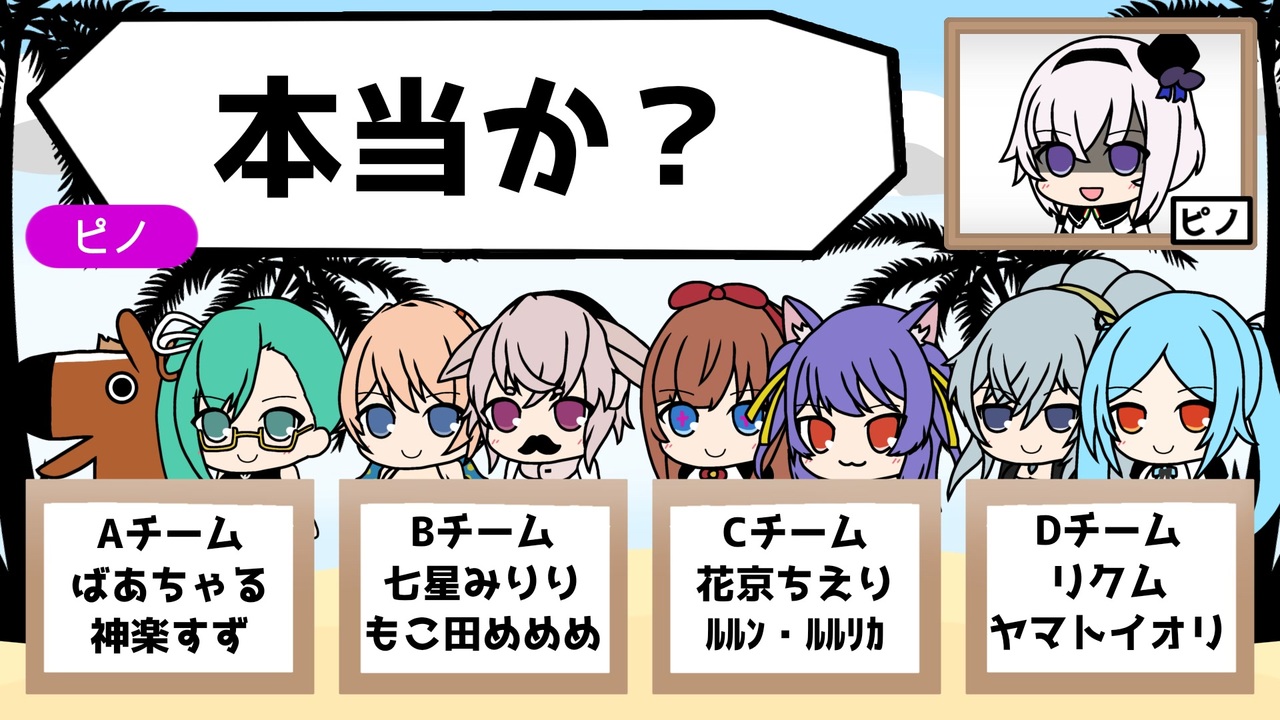 ※動画内で「花京ちえり」と表記していますが、「花京院ちえり」さんです。<br>申し訳ございませんでした。<br>コメントで教えてくれた方ありがとうございます!<br><br>楽しい企画が盛りだくさん!<br>続きは下記URLより!<br><br><br>元の動画&配信主<br><br>【意志疎通ゲーム】相方の考えてることくらい!わかりますよね!?【#夏の侵略2023/#どっとライブ】<br><a href="https://www.youtube.com/live/JUFwzLco3vI?feature=share" target="_blank" rel="noopener nofollow">https://www.youtube.com/live/JUFwzLco3vI?feature=share</a><br><br>カルロピノ <a href="https://youtube.com/@Pino_Carro" target="_blank" rel="noopener nofollow">https://youtube.com/@Pino_Carro</a><br><br><br>夏の侵略2023リスト&企画者<br><br>夏の侵略~無人島開拓大作戦!~<br><a href="https://youtube.com/playlist?list=PLmoc6epT-mYgNVeDWM2Ml6WqZdhh9iw2e" target="_blank" rel="noopener nofollow">https://youtube.com/playlist?list=PLmoc6epT-mYgNVeDWM2Ml6WqZdhh9iw2e</a><br><br>もこ田めめめ <a href="https://youtube.com/@MememeMokota" target="_blank" rel="noopener nofollow">https://youtube.com/@MememeMokota</a><br><br><br>参加メンバー<br><br>ヤマトイオリ<br><a href="https://youtube.com/@IoriYamato" target="_blank" rel="noopener nofollow">https://youtube.com/@IoriYamato</a><br>リクム<br><a href="https://youtube.com/@Rikumu" target="_blank" rel="noopener nofollow">https://youtube.com/@Rikumu</a><br>ルルン・ルルリカ<br><a href="https://youtube.com/@RurunRururica" target="_blank" rel="noopener nofollow">https://youtube.com/@RurunRururica</a><br>花京院ちえり<br><a href="https://youtube.com/@ChieriKakyoin" target="_blank" rel="noopener nofollow">https://youtube.com/@ChieriKakyoin</a><br>七星みりり<br><a href="https://youtube.com/@MililyNanahoshi" target="_blank" rel="noopener nofollow">https://youtube.com/@MililyNanahoshi</a><br>神楽すず<br><a href="https://youtube.com/@SuzuKagura" target="_blank" rel="noopener nofollow">https://youtube.com/@SuzuKagura</a><br>ばあちゃる<br><a href="https://youtube.com/@_Ubiba" target="_blank" rel="noopener nofollow">https://youtube.com/@_Ubiba</a>