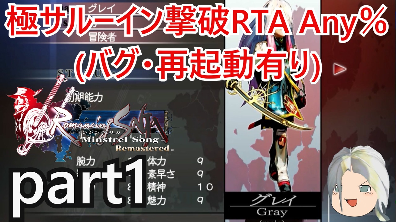 ~レギュレーション~<br>・steam版<br>・計測開始:NEW GAME選択時<br>・計測終了:極サルーイン撃破後のセーブ終了時<br>・許可事項:バグ、再起動有りのAny%<br>・禁止事項:事前に作っておいたセーブデータの引継ぎ/ロード<br><br>次→<a href="https://www.nicovideo.jp/watch/sm42535003" class="watch">sm42535003</a><br>Part1→これ<br>金曜先行公開→<a href="https://youtu.be/4zX7hGvzrfQ" target="_blank" rel="noopener nofollow">https://youtu.be/4zX7hGvzrfQ</a><br>無編集版→<a href="https://youtu.be/i5qe_0dKvdg" target="_blank" rel="noopener nofollow">https://youtu.be/i5qe_0dKvdg</a><br><br>生存報告&質疑応答用twitter → <a href="https://twitter.com/conpuman" target="_blank" rel="noopener nofollow">https://twitter.com/conpuman</a><br>