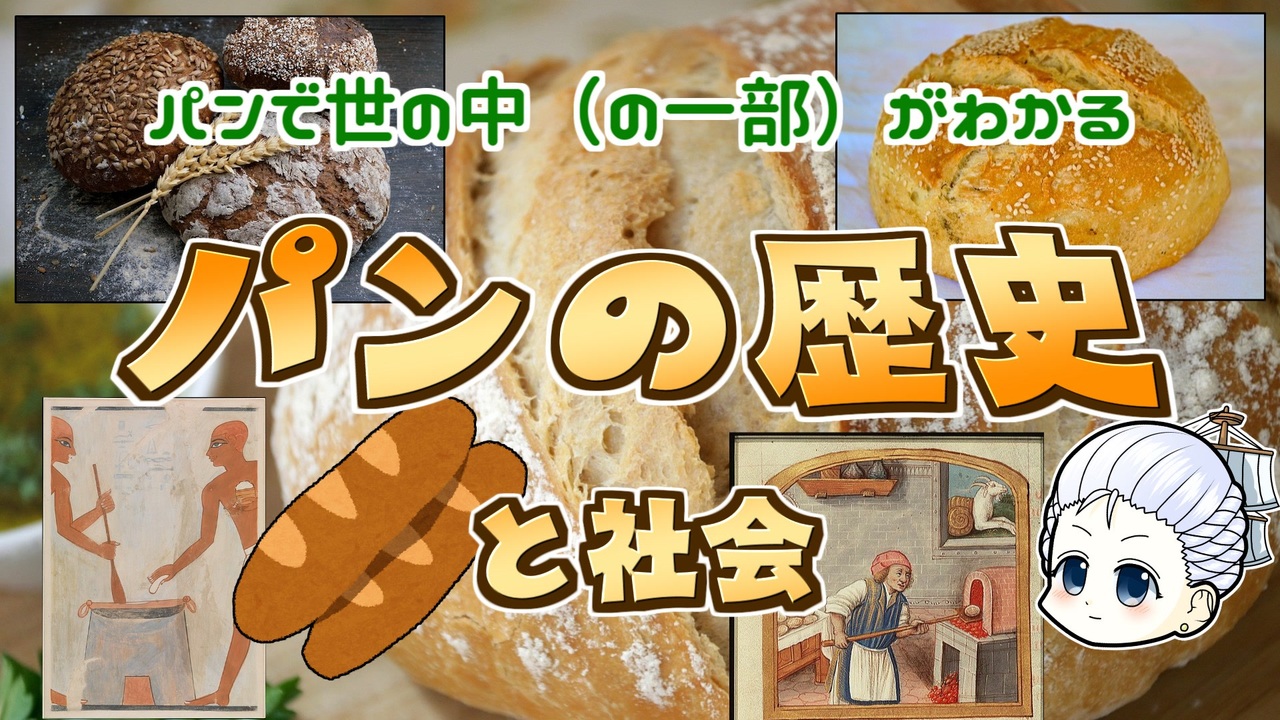 マリーは4個入りになったことが悲しいようです。<br><br>パッと見で人を判断するコツってありますか?<br>時計。髪型。靴。それでだいたいその人の経済力とか価値観がわかる…みたいなこと言いがちですよね。婚活垢とか。<br><br>そうではありません。では何を見るか?パンです。<br>その人が普段食べているパンを見ることで、経済力とか出身地がわかったりします。<br><br>※200年前までに限る<br><br>☆限定動画あり。ニコニコチャンネル、モンド・ヒストリカの離宮はこちら↓↓↓<br><a href="https://ch.nicovideo.jp/mond-historica" target="_blank" rel="noopener nofollow">https://ch.nicovideo.jp/mond-historica</a><br><br>今回の参考文献:<br>ウィリアム・ルーベル(2013)『パンの歴史』堤理香訳 原書房<br>吉野精一(2018)『パンの科学』講談社<br>渡淳二(2018)『ビールの科学』講談社<br>佐藤洋一郎(2016)『食の人類史』中央公論新社<br>左巻健男(2021)『絶対に面白い化学入門 世界史は化学でできている』ダイヤモンド社 <br><br>その他 Wikipediaなど<br><br>twitter→<a href="https://twitter.com/mond_historica" target="_blank" rel="noopener nofollow">https://twitter.com/mond_historica</a><br />━━━━━━━━━━━━━━━━━━━━━<br><br>この動画はクリエイティブ・コモンズ継承(CC-BY-SA)ライセンスの素材を使用して制作しています。(<a href="https://creativecommons.org/licenses/by-sa/4.0/)" target="_blank" rel="noopener nofollow">https://creativecommons.org/licenses/by-sa/4.0/)</a><br>規約に基づき、この動画もCC-BY-SA 4.0 のもとで公開します。<br><br>投稿者共通情報☆彡<br><br>BGM, SE:ニコニ・コモンズ様<br><a href="http://commons.nicovideo.jp/" target="_blank" rel="noopener nofollow">http://commons.nicovideo.jp/</a><br>魔王魂様<br><a href="https://maoudamashii.jokersounds.com/" target="_blank" rel="noopener nofollow">https://maoudamashii.jokersounds.com/</a><br>Audiostock様<br><a href="https://audiostock.jp/" target="_blank" rel="noopener nofollow">https://audiostock.jp/</a><br><br>立ち絵 霊夢・魔理沙(黒子式):nicotalk様<br><a href="http://www.nicotalk.com/charasozai.html" target="_blank" rel="noopener nofollow">http://www.nicotalk.com/charasozai.html</a><br><br>立ち絵 パトラ、マリー、アン、メアリ:ライフライフ様<br><a href="https://0801lifelife.tumblr.com/" target="_blank" rel="noopener nofollow">https://0801lifelife.tumblr.com/</a><br><br>使用ツール1:ゆっくりムービーメーカー4<br><a href="https://manjubox.net/ymm4/" target="_blank" rel="noopener nofollow">https://manjubox.net/ymm4/</a><br><br>使用ツール2:AviUtl<br><a href="http://spring-fragrance.mints.ne.jp/aviutl/" target="_blank" rel="noopener nofollow">http://spring-fragrance.mints.ne.jp/aviutl/</a><br><br>各時代の地図 : World History Maps & Timelines <br><a href="http://geacron.com/home-en/" target="_blank" rel="noopener nofollow">http://geacron.com/home-en/</a><br><br>ゆっくりボイスについて:AquesTalkライセンス取得済み<br><br>キャラクターボイス<br>アン・ボニー:羽ノ華(A.I.VOICE)<br>メアリ・リード:琴葉 葵(A.I.VOICE)<br>クレオパトラ:結月ゆかり(VOICEROID2)<br>マリー‐アントワネット:東北きりたん (VOICEROID EX)<br>その他キャラ:青山龍星(A.I.VOICE)、伊織弓鶴(A.I.VOICE2)、栗田まろん(A.I.VOICE)、宮舞モカ(VOICEPEAK)、フリモメン(VOICEPEAK)<br><br><br><br>その他フリー素材ご提供元の皆様に圧倒的感謝<br>