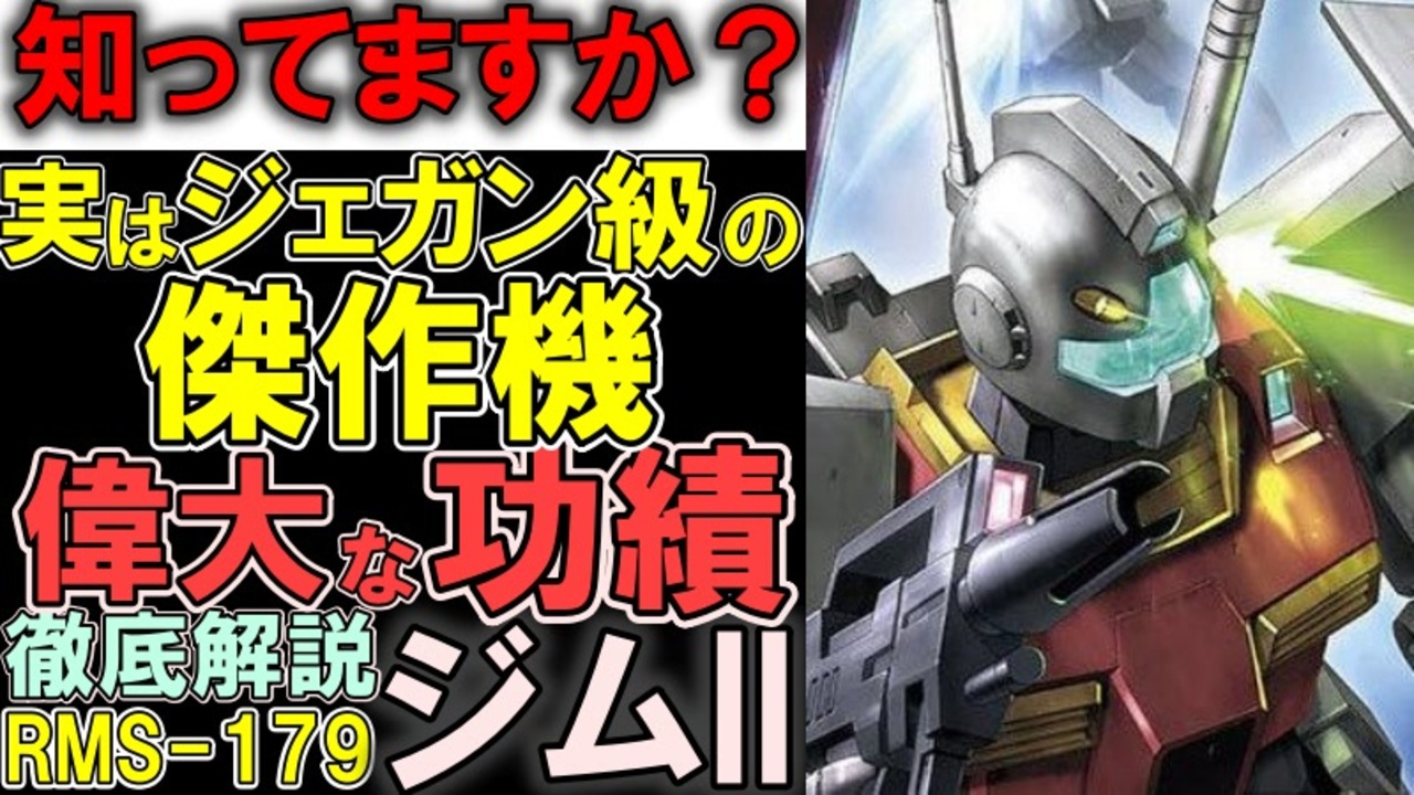 【ガンダムUC】RMS-179ジムII。実はジェガン級の傑作機?性能や偉大な功績などを徹底解説【ガンダム解説】<br><br>ガンダムZ、ガンダムUCなどに登場する量産MS、RMS-179ジムIIの性能や功績などを解説、考察する動画です。<br><br>今回は考察が多めです。<br><br>生産数=稼働台数というわけでは無いと思いますが、物凄い数ですね・・・。<br>宇宙の防衛も考慮すると、ジェガンも割りとレアモノで一番みんなに親しまれたのはジム2だったのかもしれませんね。<br><br>質問、などありましたらこちらにも<br><a href="https://twitter.com/@i4S0LHspdgzBTor" target="_blank" rel="noopener nofollow">https://twitter.com/@i4S0LHspdgzBTor</a><br><br>清見元康名義でたいあっぷ、小説家になろう、カクヨムなどに投稿しています。<br>もし良ければ応援お願いしますm(_ _)m<br><a href="https://tieupnovels.com/user/GariGari" target="_blank" rel="noopener nofollow">https://tieupnovels.com/user/GariGari</a><br><a href="https://mypage.syosetu.com/953815/" target="_blank" rel="noopener nofollow">https://mypage.syosetu.com/953815/</a><br><a href="https://kakuyomu.jp/users/GariD/works" target="_blank" rel="noopener nofollow">https://kakuyomu.jp/users/GariD/works</a><br><br>現在の最新作(短編コメディ):<br>何度繰り返してもギロチン送りにされる悪役令嬢は閃いた『敵対する者全員可愛いアイドルにしてしまおう!』アイドルギルドマスターに私はなる!<br><a href="https://ncode.syosetu.com/n2478hi/" target="_blank" rel="noopener nofollow">https://ncode.syosetu.com/n2478hi/</a><br><br>以前の作品(短編シリアス):<br>転生した厄災の大魔女はやがて聖女と呼ばれる<br><a href="https://ncode.syosetu.com/n0827ha/" target="_blank" rel="noopener nofollow">https://ncode.syosetu.com/n0827ha/</a><br><br>A.I.VOICE:結月ゆかり<br>VOICEVOX:ずんだもん<br><br>使用させていただいたずんだもん:<br>ずんだもん mini Deluxe(立ち絵) ver1.2<br><a href="https://seiga.nicovideo.jp/seiga/im10794509" target="_blank" rel="noopener nofollow">https://seiga.nicovideo.jp/seiga/im10794509</a><br><br>いつも広告、コメントありがとうございます。<br>励みになりますm(_ _)m<br>