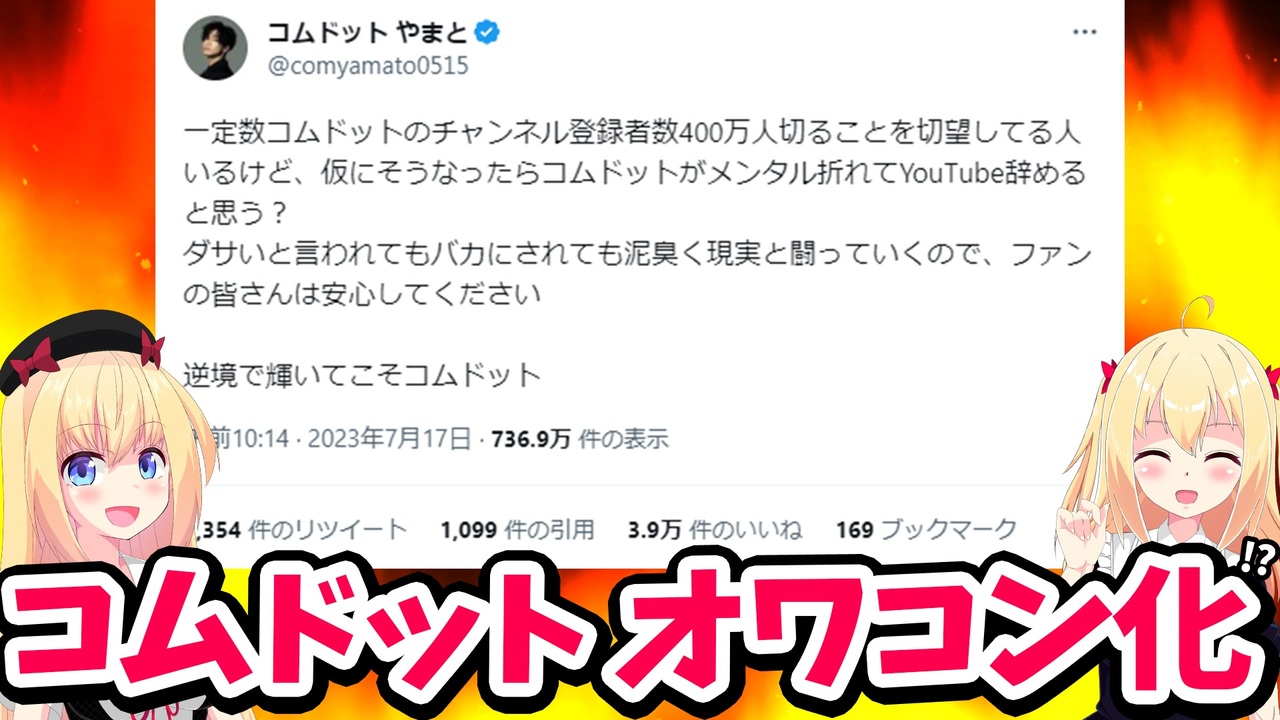 【ユーチューブで見る】<a href="https://youtu.be/WZf1HrrDSAM" target="_blank" rel="noopener nofollow">https://youtu.be/WZf1HrrDSAM</a><br>【引用元】 YouTuberコムドット、登録者数400万人下回る かつて“最後の目標”に掲げた数字 <a href="https://news.yahoo.co.jp/articles/2435a60f9f10d00754f71cdf2df13e5bdbdc87a2" target="_blank" rel="noopener nofollow">https://news.yahoo.co.jp/articles/2435a60f9f10d00754f71cdf2df13e5bdbdc87a2</a><br />【サブチャンネル】<a href="https://www.youtube.com/channel/UCNeJoEWLt0jeZ0n5lDFalJg?sub_confirmation=1" target="_blank" rel="noopener nofollow">https://www.youtube.com/channel/UCNeJoEWLt0jeZ0n5lDFalJg?sub_confirmation=1</a> <br><br>【素材など、よくお世話になっているサイト(敬称略)】<br>BGMer <a href="https://bgmer.net" target="_blank" rel="noopener nofollow">https://bgmer.net</a><br>いらすとや <a href="https://www.irasutoya.com/" target="_blank" rel="noopener nofollow">https://www.irasutoya.com/</a><br>イラストAC <a href="https://www.ac-illust.com/" target="_blank" rel="noopener nofollow">https://www.ac-illust.com/</a><br>photoAC <a href="https://www.photo-ac.com/" target="_blank" rel="noopener nofollow">https://www.photo-ac.com/</a><br>効果音ラボ <a href="https://soundeffect-lab.info/" target="_blank" rel="noopener nofollow">https://soundeffect-lab.info/</a><br>DOVA-SYNDROME <a href="https://dova-s.jp/" target="_blank" rel="noopener nofollow">https://dova-s.jp/</a><br>甘茶の音楽工房 <a href="http://amachamusic.chagasi.com/index.html" target="_blank" rel="noopener nofollow">http://amachamusic.chagasi.com/index.html</a><br>魔王魂 <a href="https://maoudamashii.jokersounds.com/" target="_blank" rel="noopener nofollow">https://maoudamashii.jokersounds.com/</a><br>ニコニ・コモンズ <a href="https://commons.nicovideo.jp/" target="_blank" rel="noopener nofollow">https://commons.nicovideo.jp/</a><br><br>★BGM★<br>Happy Smile Paura - Music by Mixtery<br><a href="https://mix-mastery.stores.jp" target="_blank" rel="noopener nofollow">https://mix-mastery.stores.jp</a><br> ※本動画ではパウラちゃんねる専用BGMを使用しています。 <br><br>#パウラちゃんねる <br><br>当チャンネルはAmazon.co.jpを宣伝しリンクすることによって紹介料を獲得できる手段を提供することを目的に設定されたアフィリエイトプログラムである、Amazonアソシエイト・プログラムの参加者です。