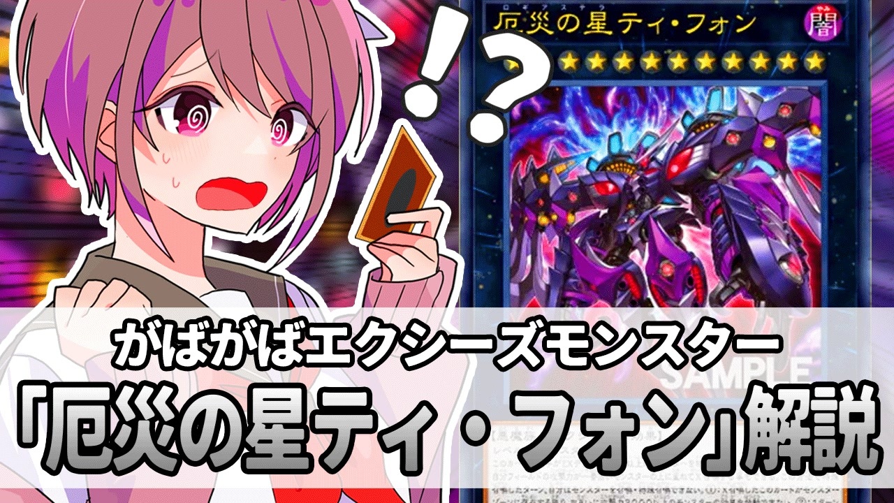 対アーゼウス最終兵器、厄災の星(ロギアステラ)ティ・フォンの紹介です。<br>超汎用エクシーズモンスターのこのカードが収録された「AGE OF OVERLOAD」が先日発売!<br /><br>【素材・制作者様】<br><a href="https://kahaduxxxe.booth.pm/" target="_blank" rel="noopener nofollow">https://kahaduxxxe.booth.pm/</a><br><a href="https://twitter.com/akr_1020" target="_blank" rel="noopener nofollow">https://twitter.com/akr_1020</a><br>※許可を得て使用しております。<br><br>【Twitter】<br><a href="https://twitter.com/pi_ni_ki" target="_blank" rel="noopener nofollow">https://twitter.com/pi_ni_ki</a><br><br>【支援絵アルバム】<br><a href="https://note.com/pix989/n/nf5aab604fd77" target="_blank" rel="noopener nofollow">https://note.com/pix989/n/nf5aab604fd77</a>