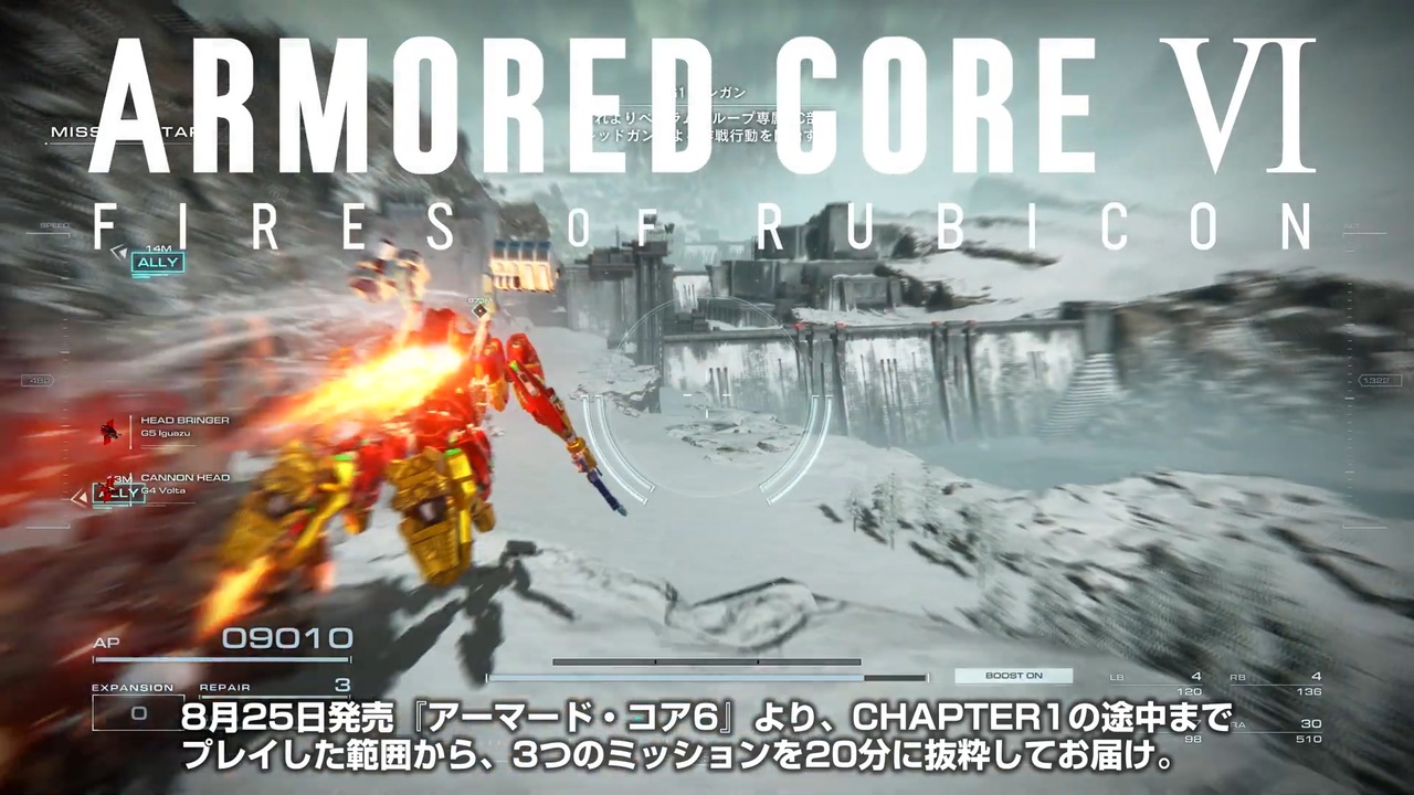 <span style="color: #134f5c; font-size: 18px;">【新作AC6 発売日決定&プレイ映像初公開】『アーマード・コア6 ARMORED CORE VI FIRES OF RUBICON』ゲームプレイトレーラー【2023.4】<br><a href="https://www.nicovideo.jp/watch/sm42142097" target="_blank" rel="noopener nofollow">https://www.nicovideo.jp/watch/sm42142097</a><br><br>新作アーマード・コア6 AC6正式発表 ARMORED CORE VI FIRES OF RUBICON アナウンスメントトレーラー<br><a href="https://www.nicovideo.jp/watch/sm41481263" target="_blank" rel="noopener nofollow">https://www.nicovideo.jp/watch/sm41481263</a><br><br><br>開発者インタビュー『アーマード・コア6 ARMORED CORE VI FIRES OF RUBICON 』<br><a href="https://www.nicovideo.jp/watch/sm41743505" target="_blank" rel="noopener nofollow">https://www.nicovideo.jp/watch/sm41743505</a></span><br><br><br>2023年8月25日(金)発売予定<br><br>対応プラットフォーム:PlayStation 5, PlayStation 4<br><br>『ARMORED CORE VI FIRES OF RUBICON』公式サイト:<a href="https://www.armoredcore.net/" target="_blank" rel="noopener nofollow">https://www.armoredcore.net/</a><br>(C)BANDAI NAMCO Entertainment Inc. / (C)1997-2023 FromSoftware, Inc. All rights reserved.